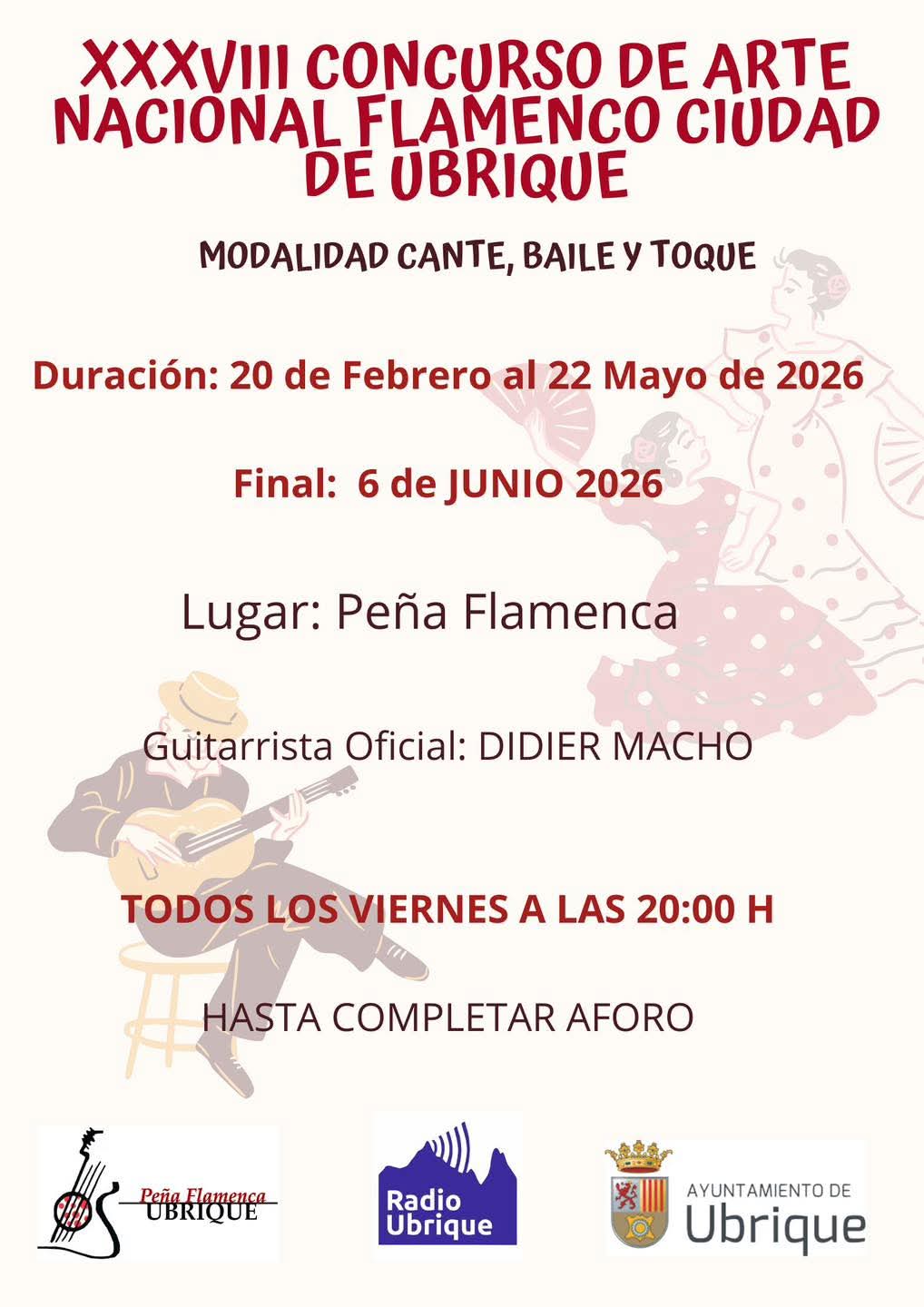 Abiertas las inscripciones para el XXXVIII Concurso de arte nacional flamenco Ciudad de Ubrique-2026