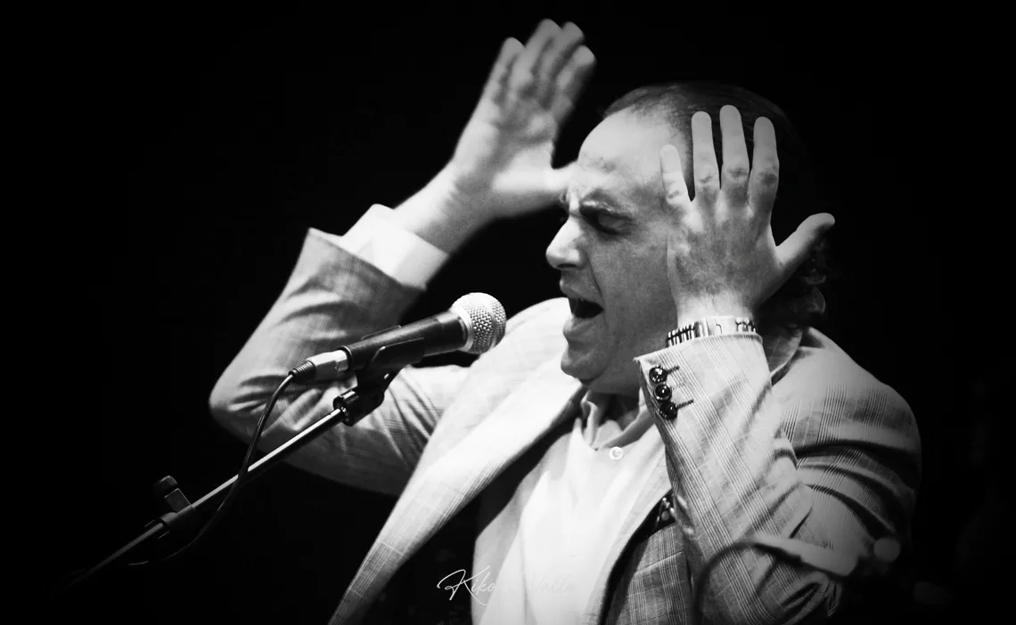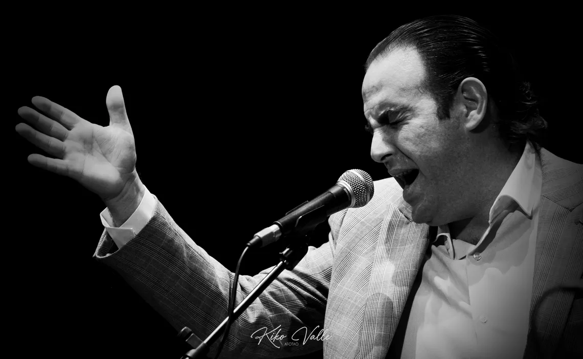Sin despeinarse meció los tercios por tientos tangos, despreocupao por el compás: le viene en sangre. Las letras elegías con cuidao, los giros fueron melódicos sin abusar de los tiempos. Cada cosa en su sitio, con fraseos bien colocaos. Apretó en un puñao de fandangos que sentenciaron como azotes, rizando los melismas de su gañote privilegiao por el que se le transparentó un corazón noble con ribetes de jondura. Cien veces me puso los vellos de punta. Porque es distinto. Que no es un flamenco pa que te revuelque a zamarreones, sino con la exquisitez de su cante mamao.
