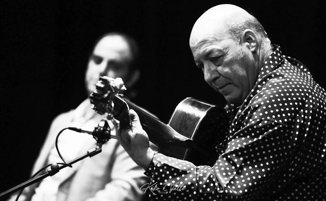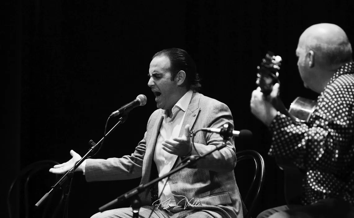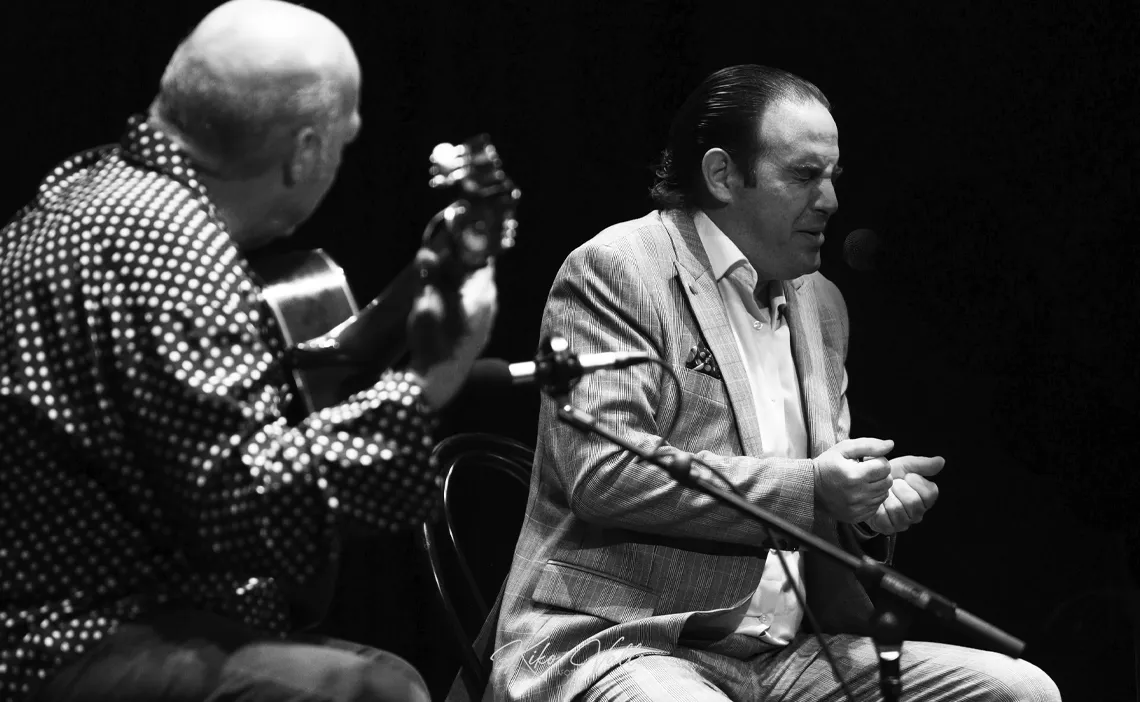 Ahora sí entró en la bulería por soleá, prosiguiendo con el piñonate de su tragaero y los guiños a su cuna. Pero más me gustó en la seguiriya, donde se quejó alejado del histrionismo, estrujando sus entretelas gitanas, llorando lagrimitas por quintales. No os desmenuzo el cante. Escuchadlo vosotros aquí mismo con el pañuelo en un puño. Y quien quiera entender que entienda. ¿Pa qué voy a listar los estilos si to er mundo sabe que cuando se canta por derecho pierde uno la cabeza?