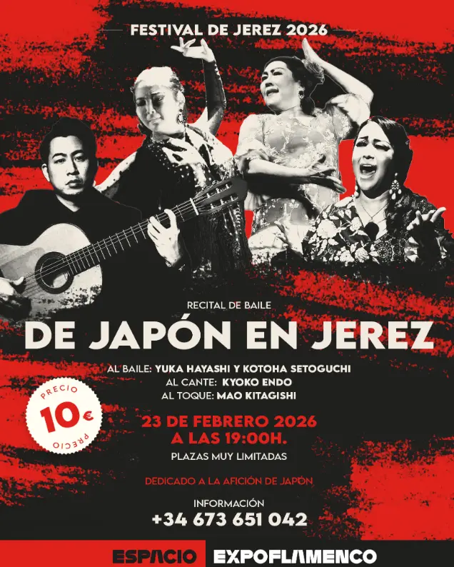 19,00 horas ‘Espectáculo Puente Flamenco entre Japón y Jerez’. Con el cante Kyoko Endo, la guitarra Mao Kitagishi y el baile Yuka Hayashi y Kotoha Setoguchi. 10 euros la entrada, plazas muy limitadas.