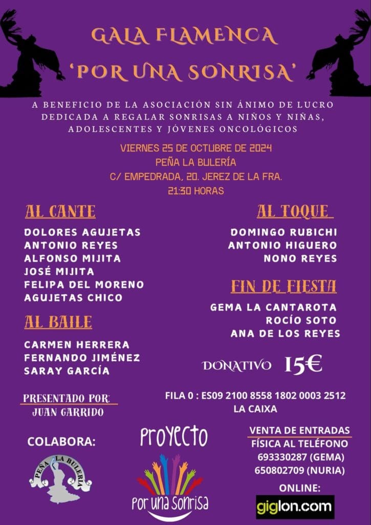 Martes 8 de octubre, a las 12,00 horas. Presentación de la gala flamenca ‘Por una sonrisa’, prevista para el 25 de octubre en la Peña de la Bulería de Jerez. A beneficio de la asociación sin ánimo de lucro del mismo nombre dedicada a regalar sonrisas a niñas y niños, adolescentes y jóvenes oncológicos. Nos visitarán sus promotoras, Gema y Nuria, quienes vendrán acompañadas de algunos artistas que participan en la velada.