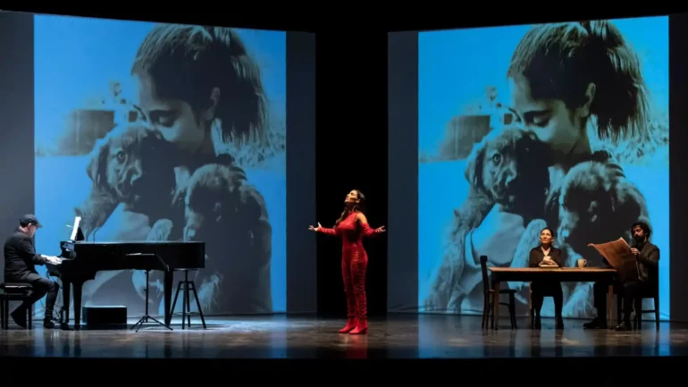 La cantante María Carrasco, quien sigue los pasos de India Martínez y María Peláe en esta función, asume el protagonismo de este desafiante reto en el que interpretará, cantará y bailará. Estará acompañada en escena por los actores Alberto Amarilla y Saturna Barrio, así como por el pianista Antonio Bejarano, el mismo elenco que cautivó a los escenarios españoles la temporada pasada.