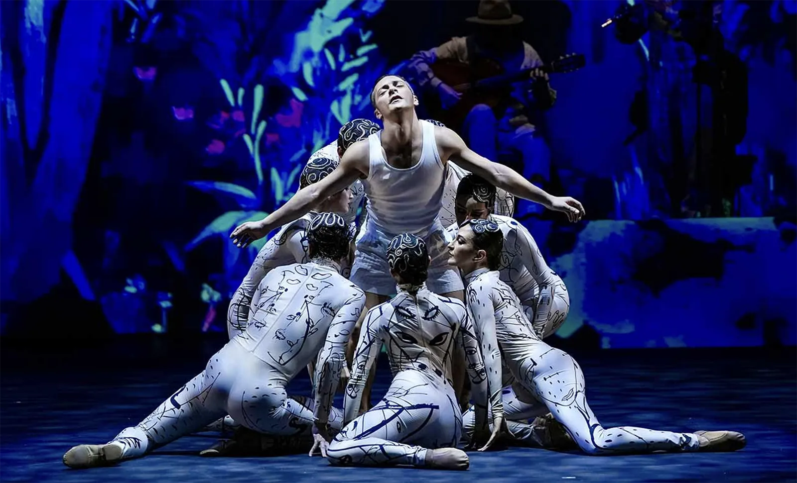 – Cuando empecé a idear este espectáculo –un año antes de su estreno, aproximadamente– yo tenía en la cabeza algo muy claro y era que quería mostrar algo muy diferente de lo que siempre se ha mostrado sobre la obra y vida de Federico García Lorca a través de la danza española y el flamenco. Siempre se ha visitado mucho el lado costumbrista en el flamenco y en la danza española. Yo lo que he querido es mostrar el lado más onírico, más poético, y por eso me ayudé del dramaturgo Alberto Conejero, que hizo una selección magnífica de poemas en los que podría abordar los cuatro estilos de la danza española de una manera muy onírica. Mi objetivo era que el público entrara en un mundo de ensueño, que todos esos personajes fantásticos y oníricos de Federico estuvieran envueltos en un ambiente espiritual. Para ello, todo el equipo creativo hemos trabajado con esa intención. Desde la diseñadora de vestuario, Yaiza Pinillos, que ha creado un vestuario acorde a este universo, representando a personajes reales como puede ser el de Soledad Montoya o personajes no humanos como la luna, los pensamientos de Lorca, el agua, los monstruos que son interpretados por los bailarines con unos trajes oníricos inspirados en los jinetes. La iluminación también está enfocada para realzar este lado onírico, hay un momento en el que aparece un gran tejido plateado que ocupa todo el escenario y que es iluminado de manera magistral por Nicolás Fischtel, uno de los mejores iluminadores que tenemos en este país, iluminando el reflejo de la luna sobre el mar, donde hace un paso a dos el Lorca niño con la luna. Las proyecciones son también muy importantes, nos sitúan en el interior de la Alhambra de Granada, en las cuevas del Albaicín, con unos diseños y unos trazos en los que Emilio Valenzuela, que es el diseñador, se ha inspirado en los propios trazos y en los propios dibujos de Federico para crear estas proyecciones. Y luego la coreografía, que al haber tantos elementos oníricos, tantas historias que contar, tantos poemas que acometer, me ha dado pie a poder mostrar todos los estilos de la danza española, como el número de ballet clásico y neoclásico que interpreta Daniel Ramos, haciendo de Lorca niño, realizándolo con unas zapatillas de ballet. Este Lorca se va haciendo mayor, pasa por la adolescencia, donde descubre su atracción hacia su mismo sexo y hasta su edad adulta antes de morir, donde presencia y protagoniza varios de los poemas del espectáculo desde los diferentes estilos de la danza española.