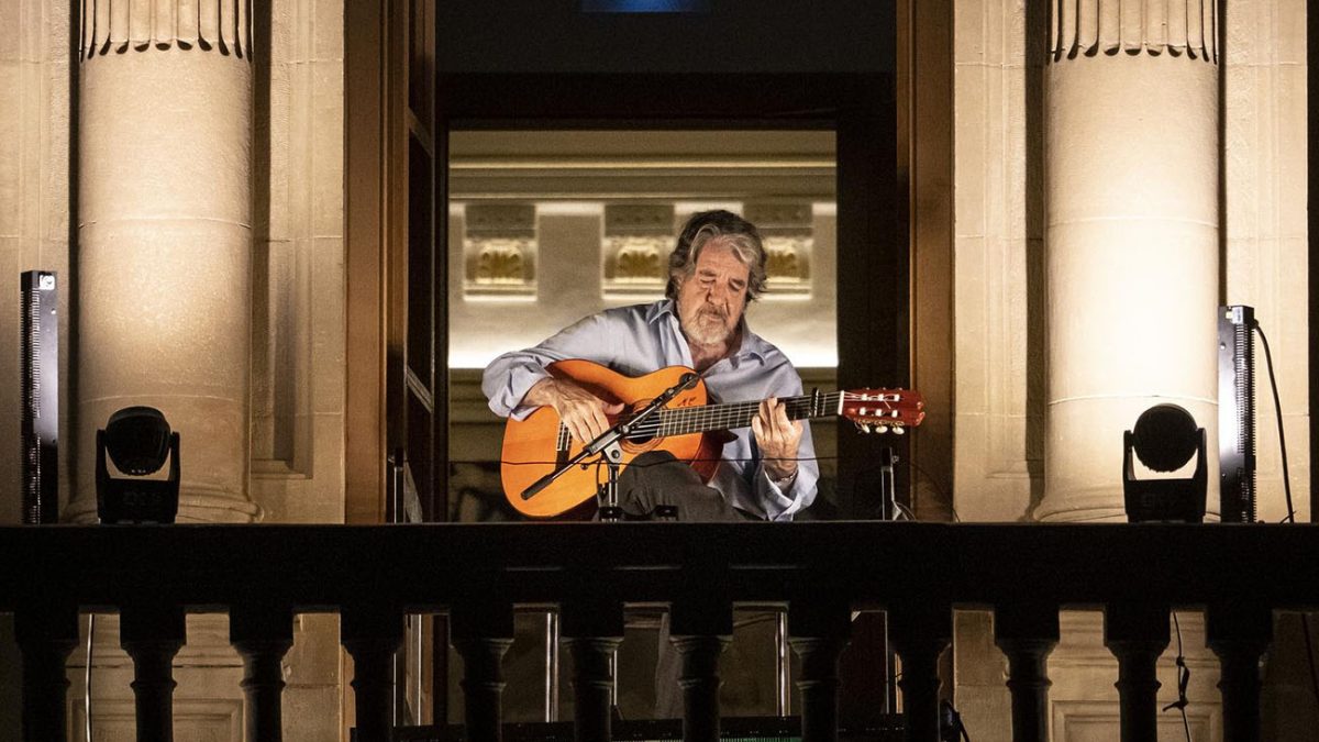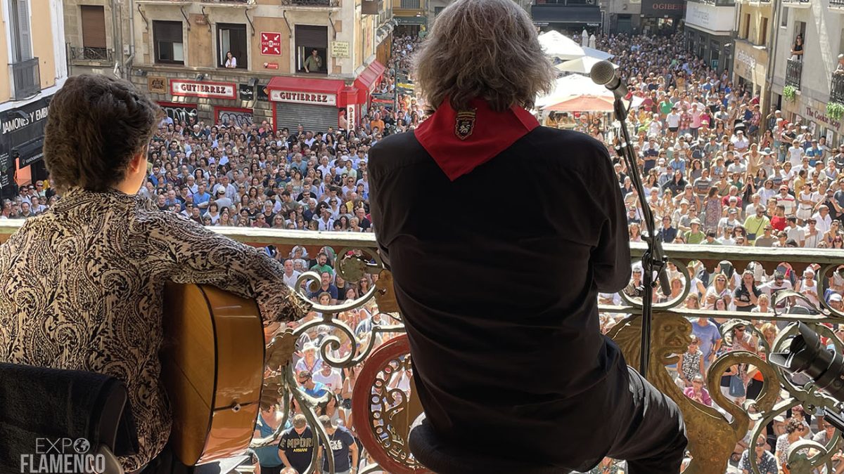 Juanito Villar se asoma al balcón del Ayuntamiento de Pamplona con sus cantes de siempre