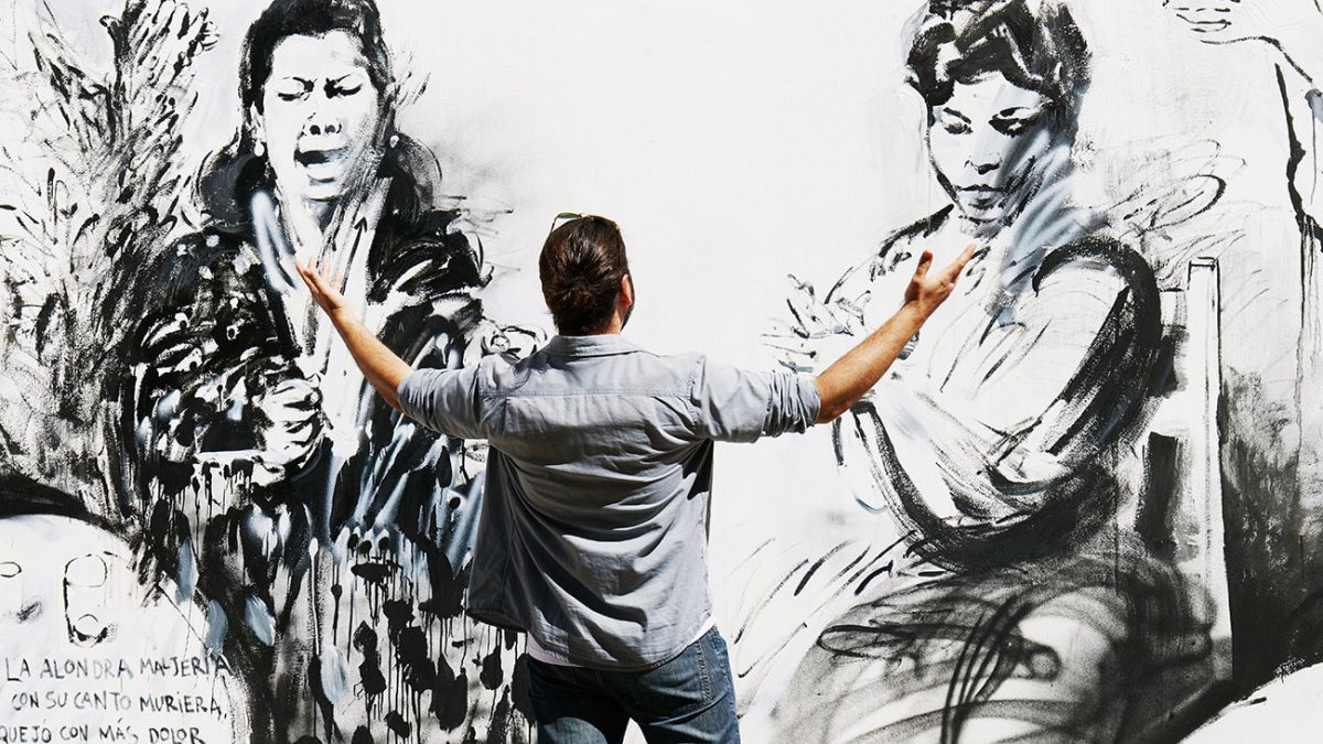 El pintaor Patricio Hidalgo inaugura en Utrera un mural en homenaje a Fernanda y Bernarda