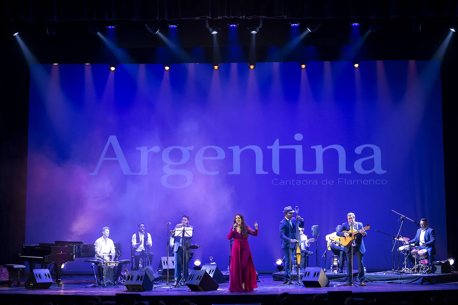 El espectáculo constó de dos partes bien diferenciadas. Primero, una flamenca, donde Argentina reivindica que por encima de todo es cantaora de flamenco, como así queda escrito y patente en la pantalla que cierra el fondo del escenario. Comenzó por tonás, haciendo gala de su voz, poderosa pero sabiendo recogerse en los graves, afinando a la perfección. En el remate, La madrugá que grabara Mairena en El calor de mis recuerdos, quizá faltó jondura, ese romperse que pide este palo, pero es que acabábamos de empezar y aún quedaba mucho espectáculo por delante. De Mairena pasó a homenajear a Juan el Lebrijano, con su tema Dame la libertad.