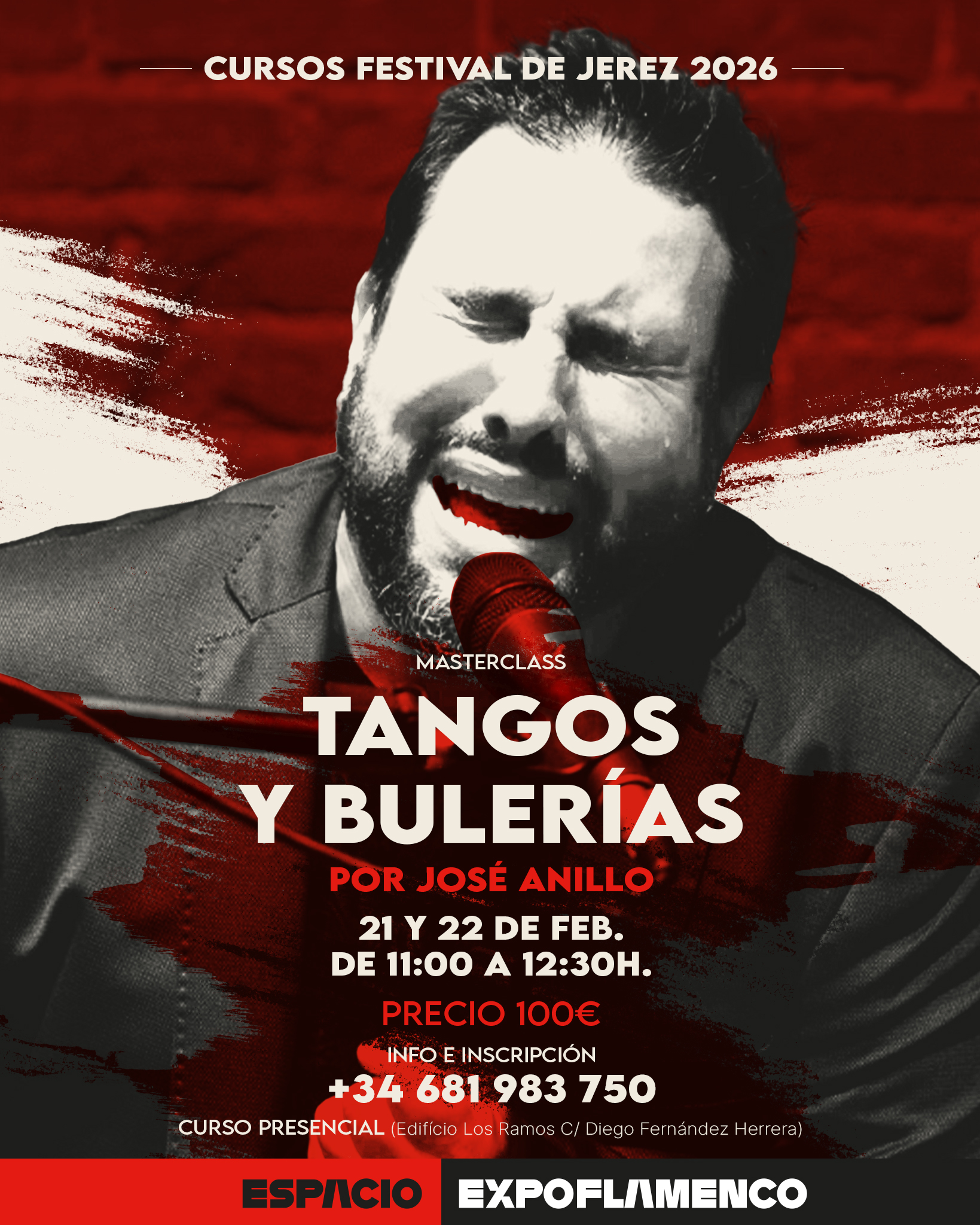 11.00 a 12.30 horas. Masterclass de cante por Tangos y Bulerías con José Anillo. (Dos días de duración).
