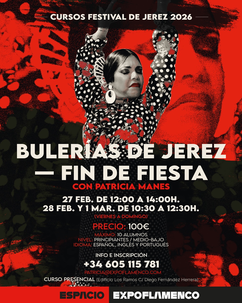 Nota de interés: Para mayor información, reservas y precios de cada uno de los talleres os dejamos este correo electrónico: espacio@expoflamenco.com. Con la referencia: Cursos Festival de Jerez 2026. Escríbenos y te contestaremos rápidamente. Te informaremos de precios y ma manera de asegurar tu plaza.
