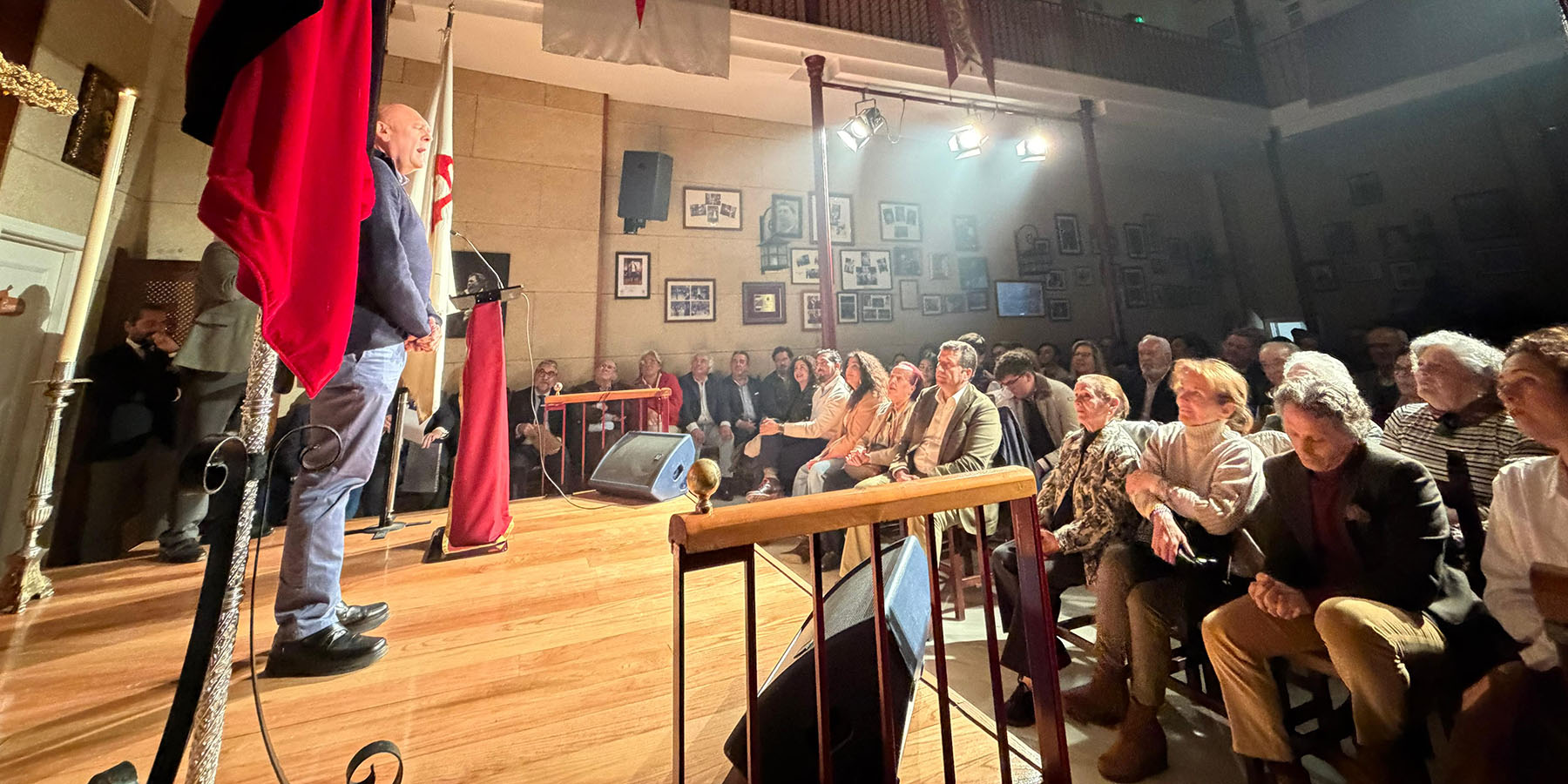 Entre décimas y romances, sonaron las saetas de Abraham El Zambo, Joaquín Fernández y Joaquín el Zambo, todo con un sentido de recogimiento francamente emotivo. Pero Joaquín, actual presidente y otro de los fundadores, no se aguantó y le pidió a Luis de Pacote (Comandante Lara en su faceta humorística) que se sumara. No pudo negarse y se mostró generoso, con anécdotas y una saeta de esas que cuestan acabar por una garganta rota en llanto.
