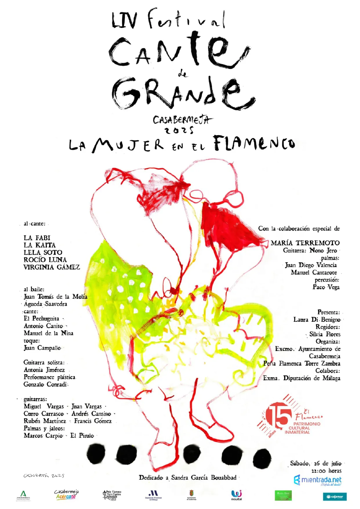 El sábado 26 de julio a las 10 de la noche en el polideportivo municipal Antonio Sánchez de Casabermeja tendrá lugar la 54ª edición del Festival de Cante Grande, que en esta ocasión rendirá tributo al talento de las mujeres que fraguaron la tradición flamenca. Con el título de La Mujer en el flamenco, este festival les dará protagonismo en las tres dimensiones de este arte: el cante, el baile y la guitarra. La festividad está declarada de Singularidad Turística Provincial por la Diputación y de Interés Turístico Nacional de Andalucía. Las entradas están disponibles en mientrada.net.