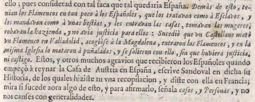 Por cierto, los oriundos de Flandes, los “flamencos” de Flandes, también tenían muy mala fama por su carácter pendenciero y violento. Léase la Moxiganga de moxigangas, papelón de papelones, manifiesto de manifiestos, idea de ideas, reflexión de reflexiones, cuento de cuentos [16] (ca. 1705), en donde se narran las perrerías, asesinatos, robo y trato vejatorio de los flamencos hacia los españoles, sin que hubiera justicia, cuando empezó a reinar la casa de Austria en España.
