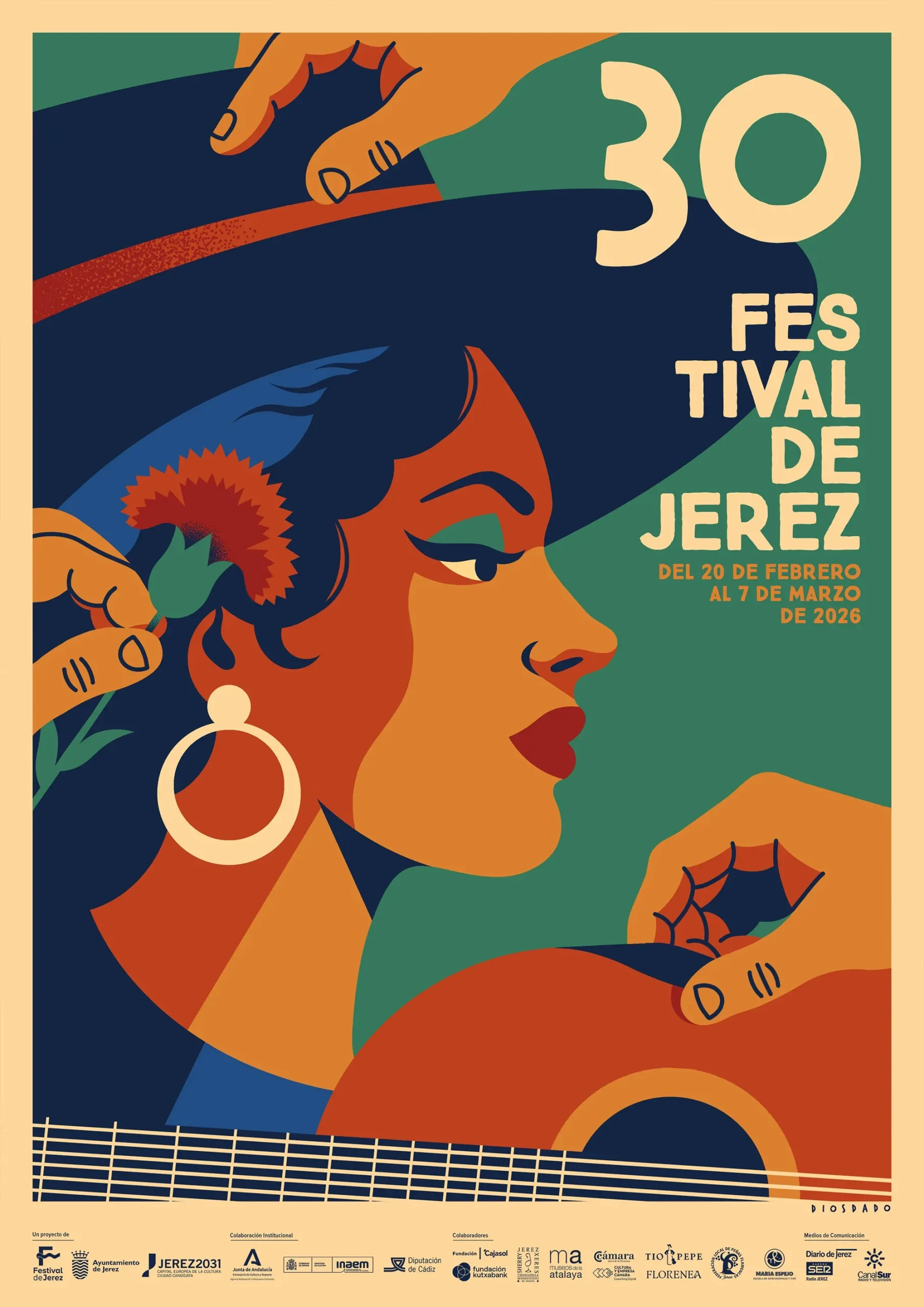 En este espíritu se inspira también el cartel de la edición, concebido por el ilustrador y diseñador gráfico Daniel Diosdado como síntesis visual de todo lo que el Festival propone este año. Con esta imagen, con la que Diosdado pone broche final a una década de fructífera colaboración, la cita se presenta al mundo con una estética que respira la misma libertad para expresarse, para ser mezcla y pulsión creativa que vertebra su programación. Calles, peñas, museos y teatros volverán a latir al compás de un arte que nació de la fatiga de un pueblo que encontró en él un refugio en el que ser libres y que hoy es patrimonio colectivo.