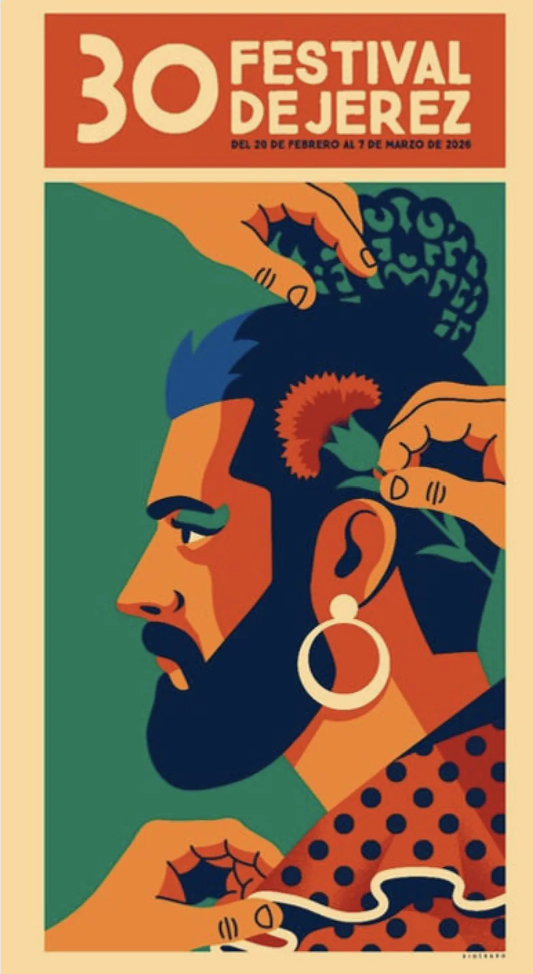 En este espíritu se inspira también el cartel de la edición, concebido por el ilustrador y diseñador gráfico Daniel Diosdado como síntesis visual de todo lo que el festival propone este año. Con esta imagen, con la que Diosdado pone broche final a una década de fructífera colaboración, la cita se presenta al mundo con una estética que respira la misma libertad para expresarse, para ser mezcla y pulsión creativa que vertebra su programación. Calles, peñas, museos y teatros volverán a latir al compás de un arte que nació de la fatiga de un pueblo que encontró en él un refugio en el que ser libres y que hoy es patrimonio colectivo.