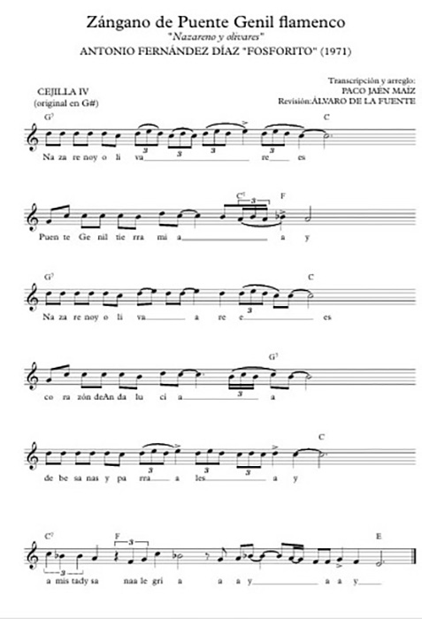 Una anécdota de los años cincuenta ilustra esta circunstancia [18]: durante un ensayo de los Coros y Danzas de Puente-Genil en el que contaron con Fosforito para practicar su coreografía, las niñas no pudieron cuadrar los pasos de baile con el zángano que cantaba el maestro Fosforito, lo que sugiere que lo que ellas estaban acostumbradas a escuchar era rítmica y melódicamente distinto a lo que les cantó el maestro.