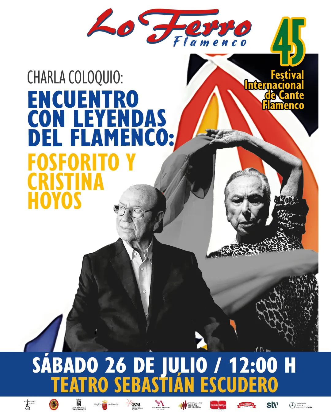 Durante la actividad de la agenda cultural del sábado 26 de julio viviremos un momento histórico en el Teatro Sebastián Escudero de Lo Ferro a las 12 h con el Encuentro con leyendas del flamenco, en el que participarán los maestros Antonio Fernández Díaz Fosforito y Cristina Hoyos.