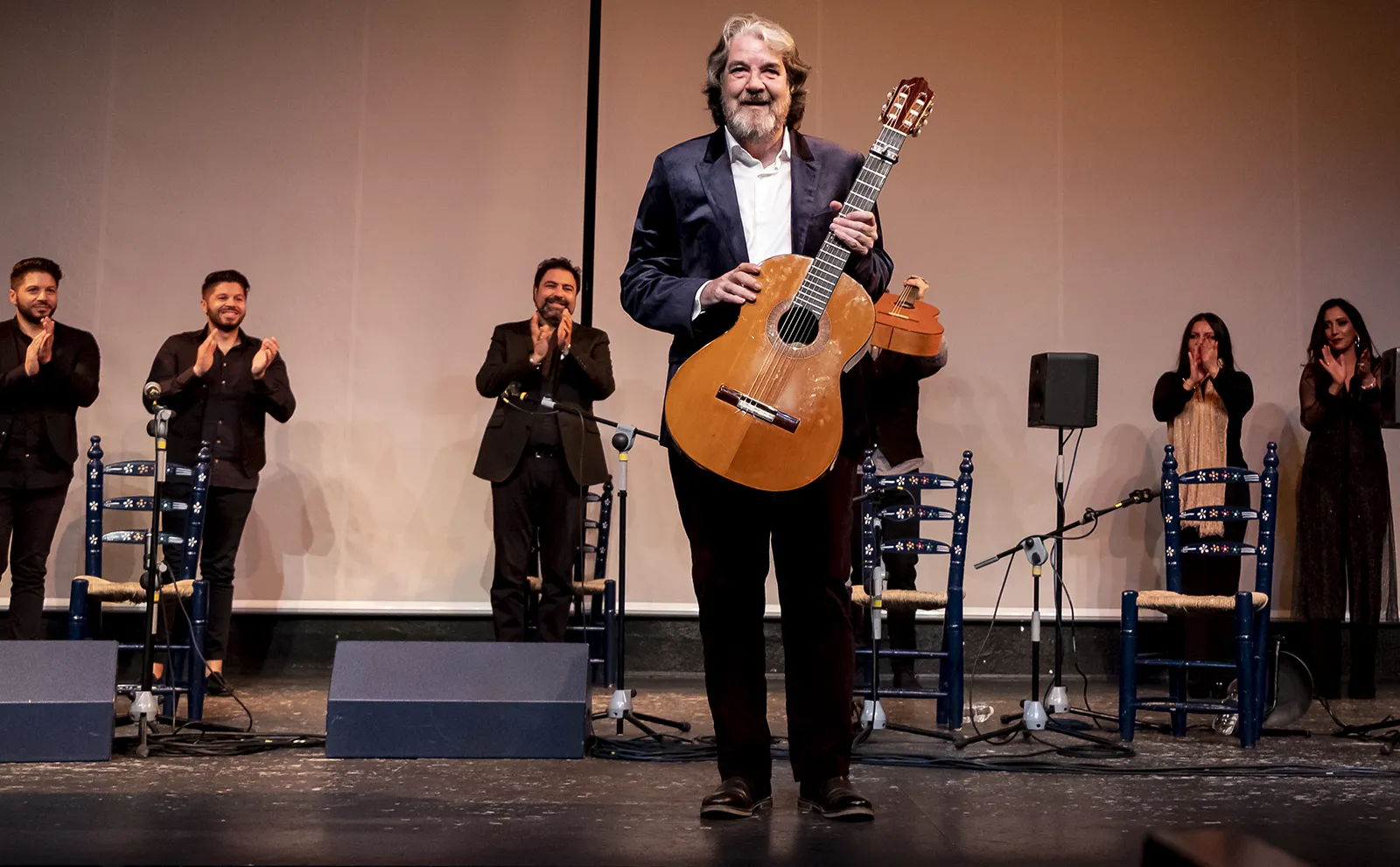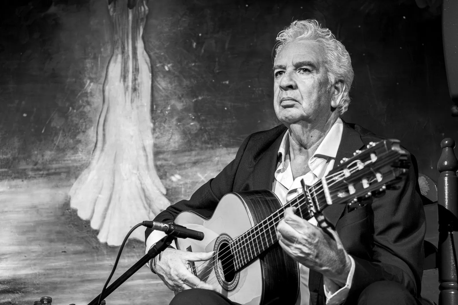 El patriarca de la casa Habichuela, todavía con la memoria intacta —poco después empezaría a resentirse—, nos regaló un caudal de anécdotas hilarantes junto a Camarón y Paco de Lucía, Fosforito, Mairena o Caracol. Al evocar a este último, y tras lanzar una mirada plena de intención a los asistentes, confesó con solemne franqueza que acompañarlo le llenaba más porque “le pellizcaba” en mayor medida que otros cantaores. Aquellas palabras hicieron que sus amigos se miraran creyendo vislumbrar una comparación tácita con Mairena y que, llenos de complicidad, aplaudieran mientras se retorcían de gusto en los asientos.
