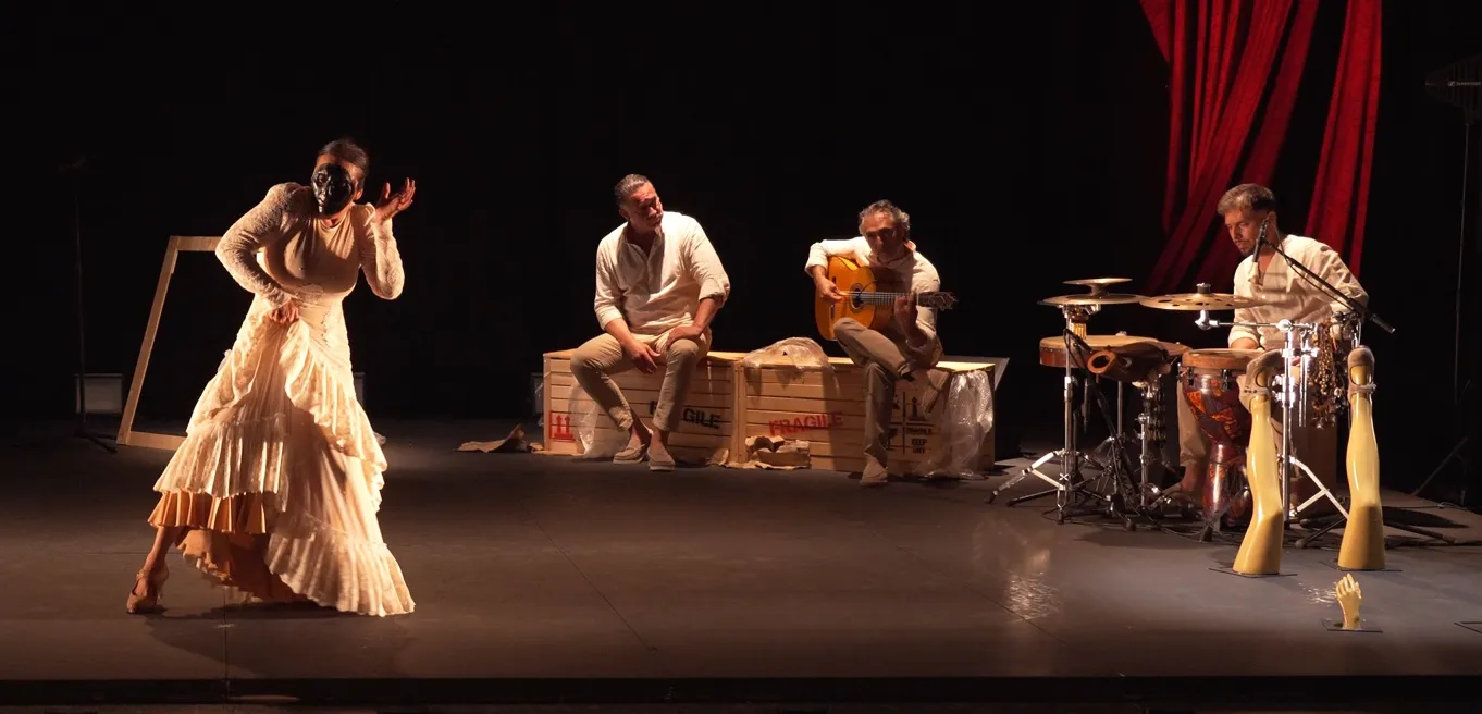 Y es que La Lupi nunca deja de sorprendernos y en este espectáculo no iba a ser menos, pues demuestra ser también una gran actriz al interpretar un monólogo a modo de confesión, mientras, ahora sí, le toca embelesado Curro de María una pieza instrumental. Nos dice cosas como ‘La Lupi se comió a Susana’ o ‘no me gusta mi cara cuando bailo’. Por eso se coloca una moretta veneciana y baila al cante de Tejada por soleá apolá –que se acordó de Marchena–, poniendo todo su ser, toda su técnica al servicio de su expresividad, de su creatividad infinita: ese delicado giro de manos, esa coordinación exacta de movimientos y desplantes con el cante y la música, esa entrega absoluta, ese deseo de perfección insaciable que es marca inconfundible de esta bailaora malagueña.