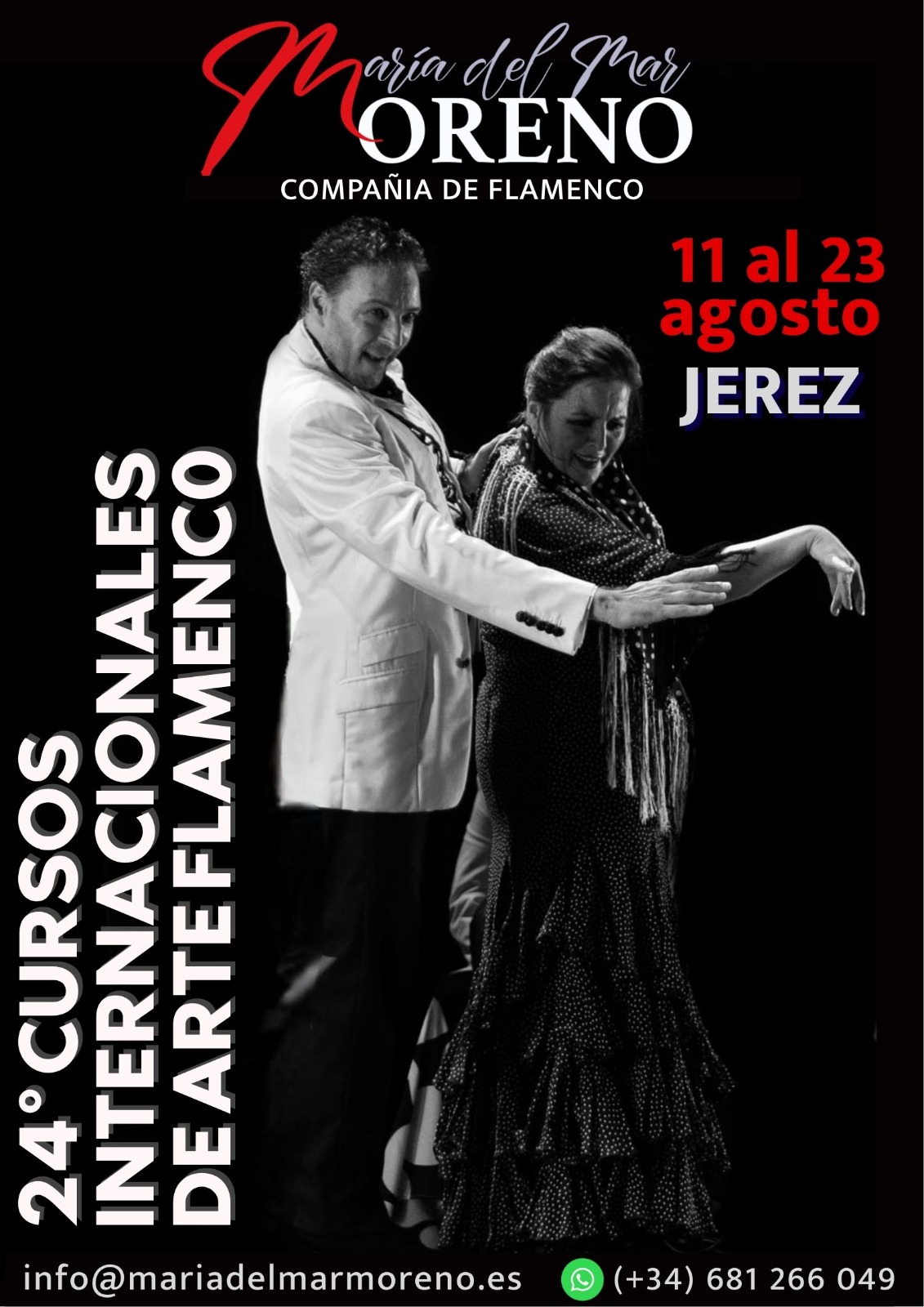 La vigésimo cuarta edición de los afamados cursos que organiza la bailaora y coreógrafa jerezana María del Mar Moreno se celebra del 11 al 23 de agosto, todos en horario de mañana. Participan, entre otros, Antonio Malena (cante), Santiago Moreno (toque) y Antonio El Pipa (baile).