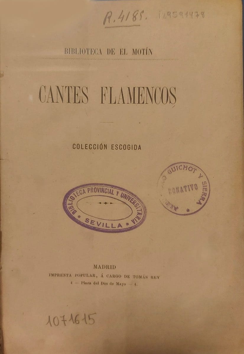 El año 1881 fue fundamental para la literatura flamenca. Al albor del folklore andaluz aparecieron tres publicaciones que podríamos calificar como fundamentales: la ya citada de Demófilo, el Die cantes flamencos, de Hugo Schuchardt, y el Primer cancionero de coplas flamencas, de Manuel Balmaseda González, un ecijano que nació como “hijo del trabajo” y murió de hambre y de penas en Málaga.
