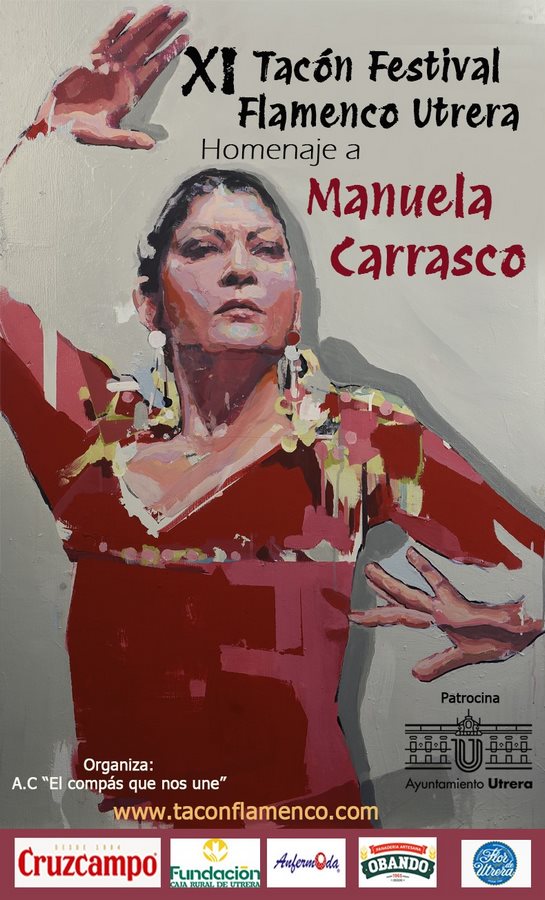 La Asociación El Compás que nos une ha anunciado su cartel del XI Tacón Flamenco de Utrera que se celebrará del 22 al 28 de febrero de 2025 en la citada localidad sevillana. Esta undécima edición tendrá como gran protagonista a la bailaora sevillana Manuela Carrasco, que será homenajeada en el único festival de Andalucía con una duración de siete días dedicados al baile flamenco.