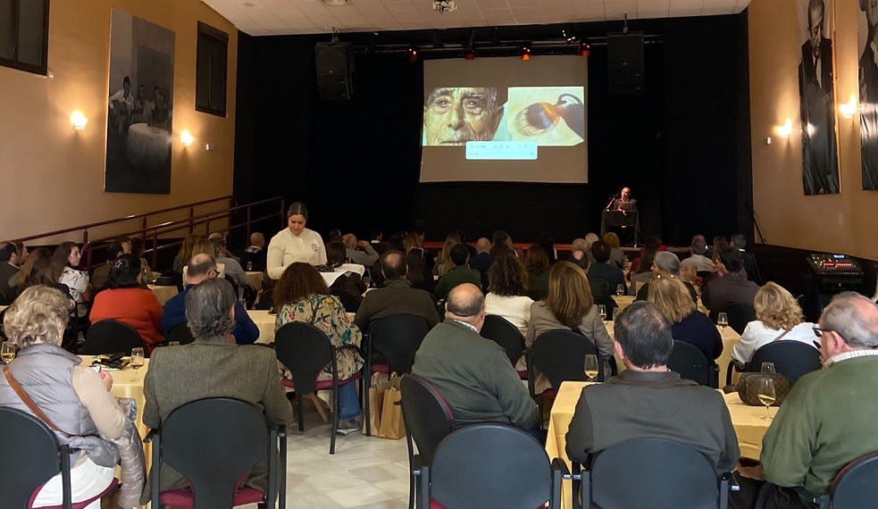 Justo en la Sala Carrera, a mitad de itinerario, se realizó la sesión de Cultura Flamenca & Sherry dedicada en este caso a Melchor de Marchena. Del recordado guitarrista pudimos ver unos vídeos acompañando a Antonio Mairena y Manolo Caracol, si bien la bienvenida estuvo a cargo de La Paquera de Jerez con Parrilla. Los vinos que nos acompañaron fueron el fino Inocente y el amontillado Tío Diego de Bodegas Valdespino, una de las casas más antiguas de la zona, que hoy día está integrada en Grupo Estévez de Jerez. Antes se degustaron otros vinos como el Vermouth Valdespino, la manzanilla Deliciosa o el amontillado medium Contrabandista de la misma bodega. Agradecemos el saber estar y escuchar de los amigos marcheneros.