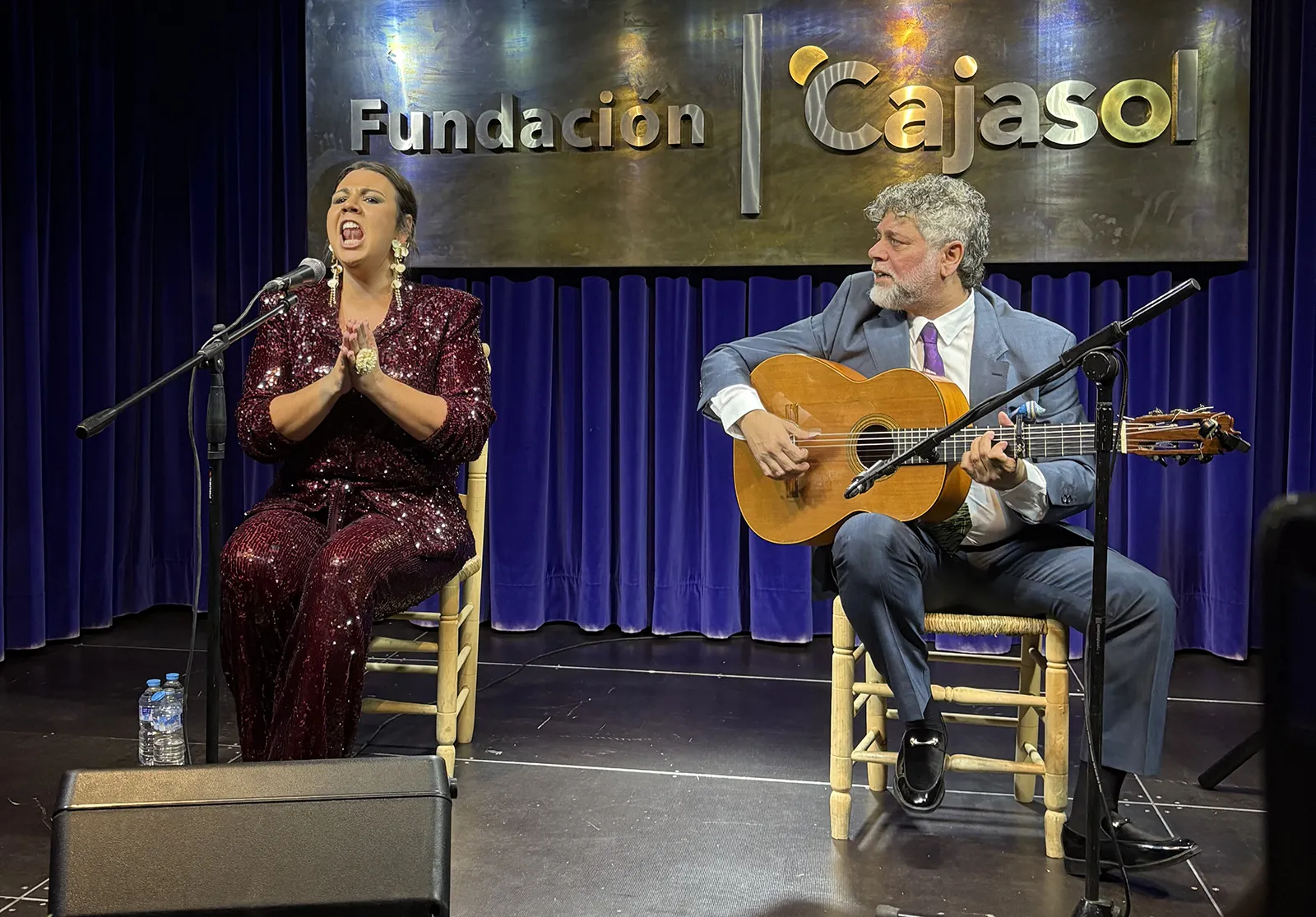 Manuel Jero es un guitarrista con sabor añejo y entiende que eso no está reñido con que el instrumento esté en las condiciones óptimas en cada momento. Es preciso en la afinación. No es para menos, porque lo que se viene ahora es la siguiriya, cante con el que María Jesús nos dejó con la mirada fija en sus ayes y su expresión. Con la mirada fija en sus maneras cantaoras y en el dolor que trasmina su melodía retrotrayéndonos a Sernita, a Tío José de Paula, asaeteándonos en el cierre de Juan Junquera. Siguiriya con sabor a siguiriya, qué más puedo contar.