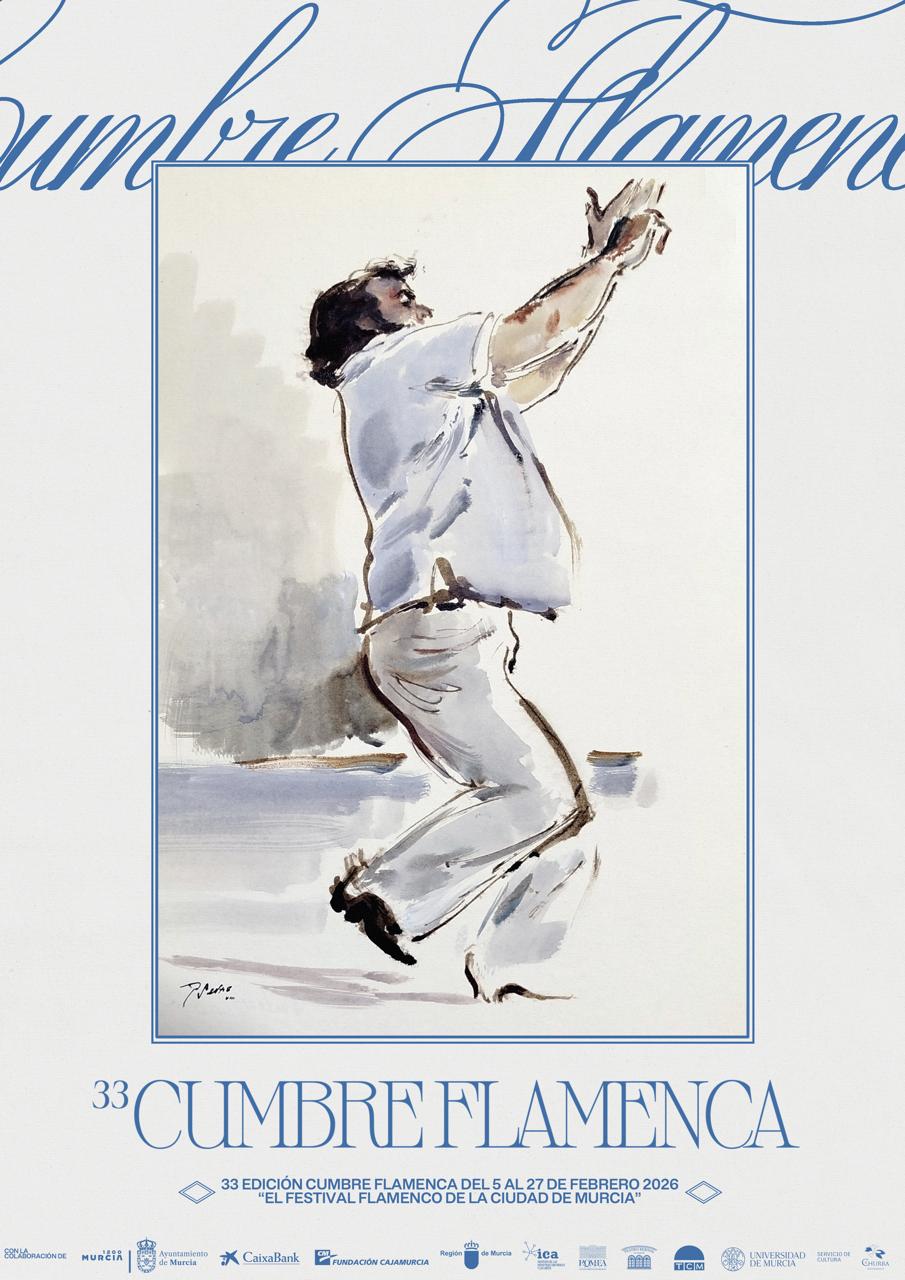 El cartel oficial de esta 33ª edición ha sido realizado por el artista Pedro Serna, cuya obra aporta una mirada actual y simbólica al universo flamenco, dialogando con la identidad cultural del festival.