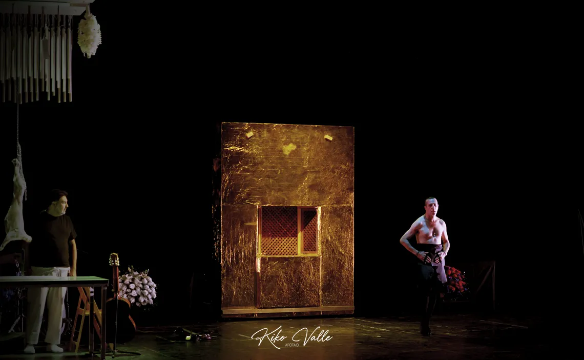 Quienes fueran buscando el baile rancio se equivocaron de sala. Pudo resultarles hasta desagradable. Porque Andrés Marín y Ana Morales deconstruyeron los códigos reescribiendo las formas. No fue un espectáculo cómodo, porque removió desde la libertad creadora y de pensamiento. Como si fueran azotes oníricos, sin ilación aparente, entrelazaron escenas de lo pagano y terrenal con la religión o la Semana Santa sevillana. Desconcertante y atrayente resultó el despiece de un cordero que descuartiza con destreza el cantaor Antonio Campos –magnífico al cante, a la guitarra flamenca y eléctrica y en la interpretación– y cuyos trozos de carne arroja al suelo para que los cojan con los dientes los bailaores en una ceremonia de sensualidad carnal, en todos los sentidos. Pecan con premeditación y alevosía, por elección, a sabiendas de que serán expulsados del paraíso de los cánones flamencos y de lo políticamente correcto según la ética y la estética de la sevillanía más casposa y clasicona. Pero lo hacen en la búsqueda de su propio edén, desdeñando la salvación cristiana sin caer en la ofensa, sino apartándose del camino para crear su propia iglesia de cartón en la que entrar a cuatro patas y casi desnudos, sin nada más que el deseo y la convicción de que otra vida, otras concepciones y otro paraíso son posibles, por más que vayan a contracorriente. Dos empleados de Cárnicas El Paraíso de espaldas al público contemplaron la recogía. Todo ello después de besarse con capirotes dorados y quedar ‘crucificados’ con gafas de sol sobre una plataforma de pan de oro y con el Rezaré de Silvio, roquero y buen cofrade de Sevilla, sonando de fondo.