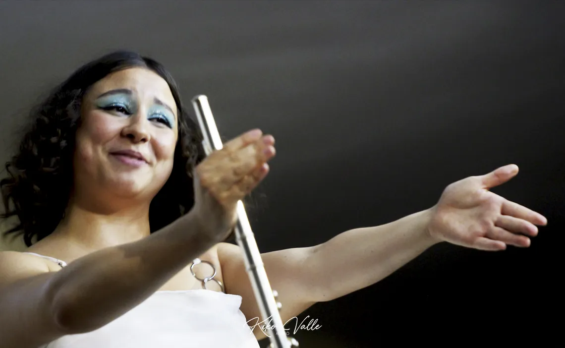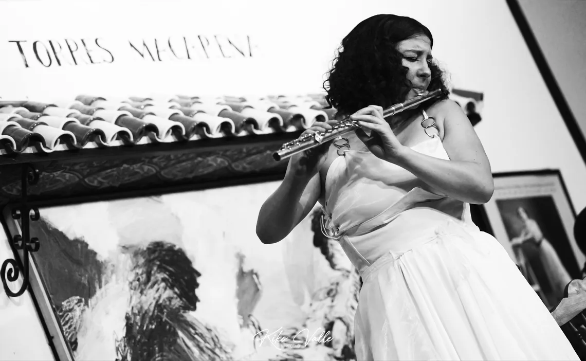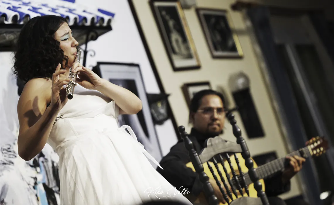 No es habitual escuchar la flauta en un espectáculo flamenco. Aunque se dan honrosas excepciones, como la de Juan Parrilla. Y en la historia de este género y «sus derivados», como diría Fernando el de la Morena, conocemos algunas incursiones. Más quizá con el saxo –desde el Negro Aquilino a Jorge Pardo–. Siempre recuerdo la anécdota que me contó el guitarrista Ricardo Miño, que vio su verano arruinado por la estrechez de miras a la ‘vanguardia’ o los experimentos que poco le gustaban al representante artístico Pulpón, que los dejó sin un montón de festivales por la ‘osadía’ de incluir en su función al flautista y saxofonista Luis Fatal con la bailaora Pepa Montes, pareja sentimental del tocaor. Pastora Filigrana ya lo dijo en su magnífica y amena presentación del recital. No solemos ver en los cuadros este instrumento. Y no desentona en absoluto. Parece que siempre hubiera estado ahí. Más aún con la soltura con la que Aurora lo toca.