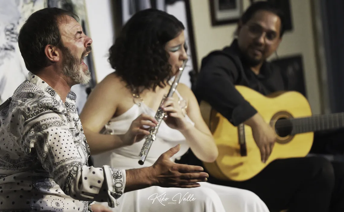 Cantó con la flauta, jugando con los semitonos y las cadencias. Se reconocían los giros, sopló con delicadeza la queja dulce. Lo hizo acordándose de los viejos. Se nos vinieron a la mente las letras rancias, los estilos de siempre, la veneración por la raíz. Y luego lo apostilló con el cante, mirándose en La Niña de los Peines y las hechuras frescas que se llevan hoy.