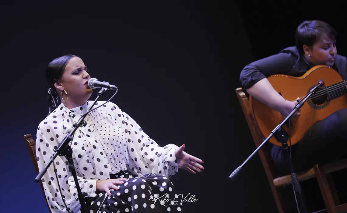 Celia Jiménez (25 años, Alcalá de los Gazules, Cádiz) se templó por peteneras acordándose de Pastora Pavón y cerró por marianas de tintes morisco-menesianos, acompañada a la guitarra por Alba Espert. Y Luis Ortega (19 años, La Algaba, Sevilla) entonó las cadencias musicales de la soleá de Triana y la apolá, para abrochar su participación con el polo.