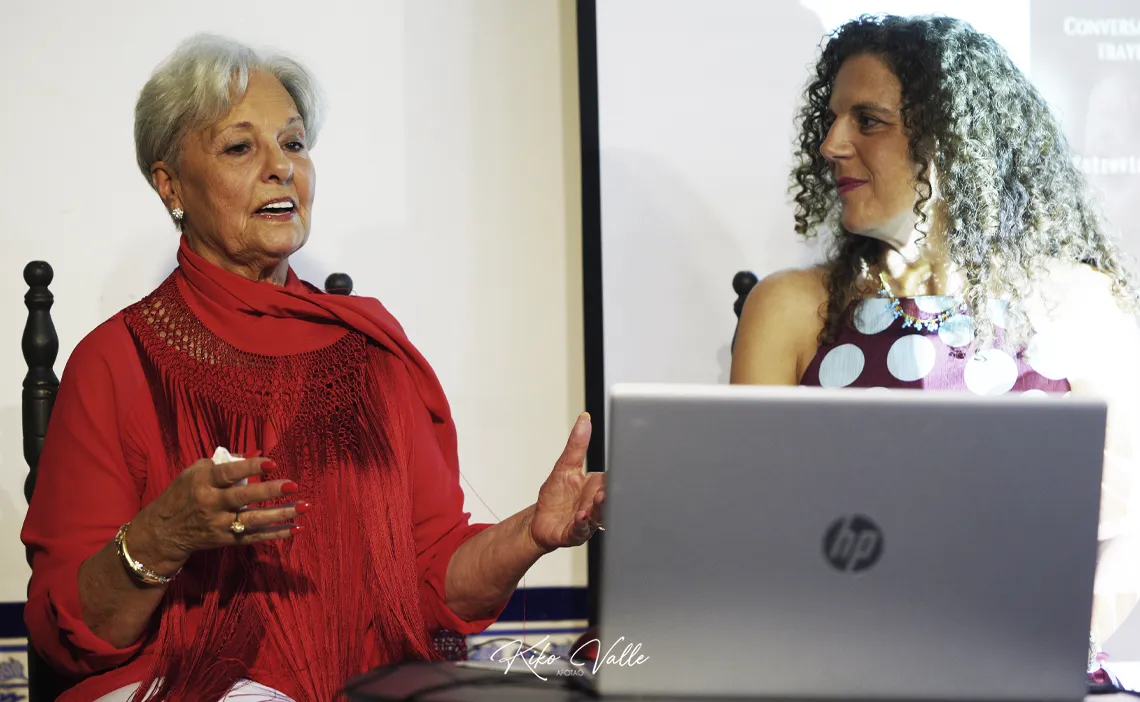 Esta fue una de muchas de las anécdotas que la cantaora de San Fernando, recriada en Jerez y afincada en Huelva desgranó durante una emotiva entrevista que condujo con maestría la amiga y compañera Ángeles Cruzado para recordar la trayectoria artística de la que probablemente fue la mujer flamenca más solicitada en los festivales de los años 80 y parte de los 90, como acertó a citar estadísticamente la entrevistadora.