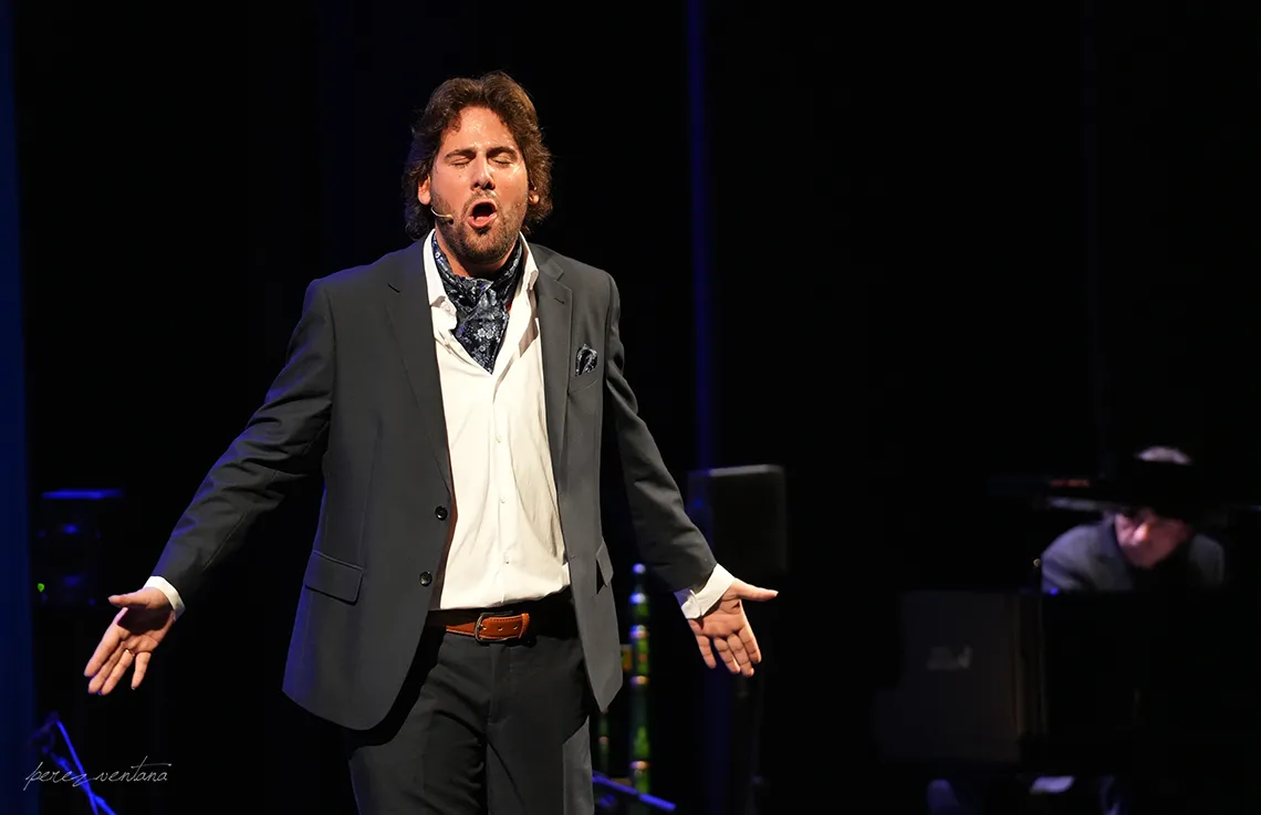 La responsabilidad de esta noche hace que esté cagao de mieo y lleno de orgullo. Se ha comprao un traje para la ocasión y ha reposao la voz para guardarse para ustedes. Con la jindama en el cuerpo porque está el teatro abarrotao, hasta la colcha. Aguantando ya las lágrimas por los que no están y emocionao por los que han venido.