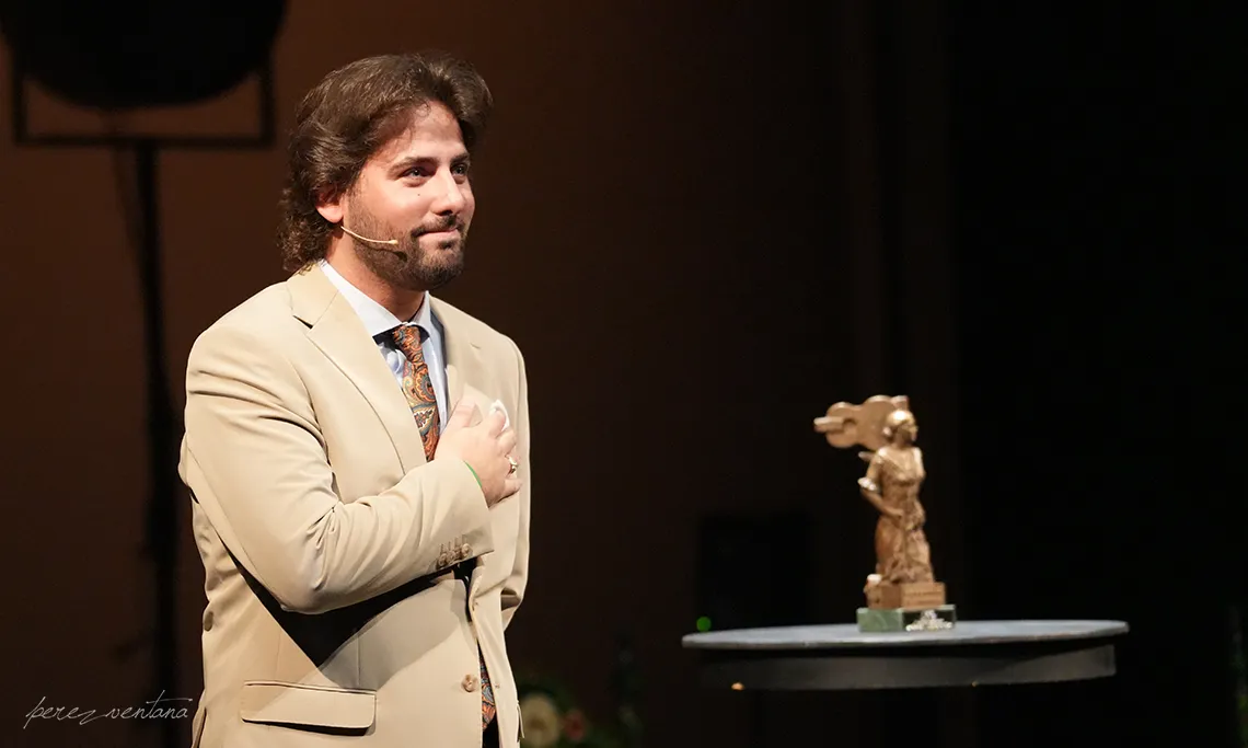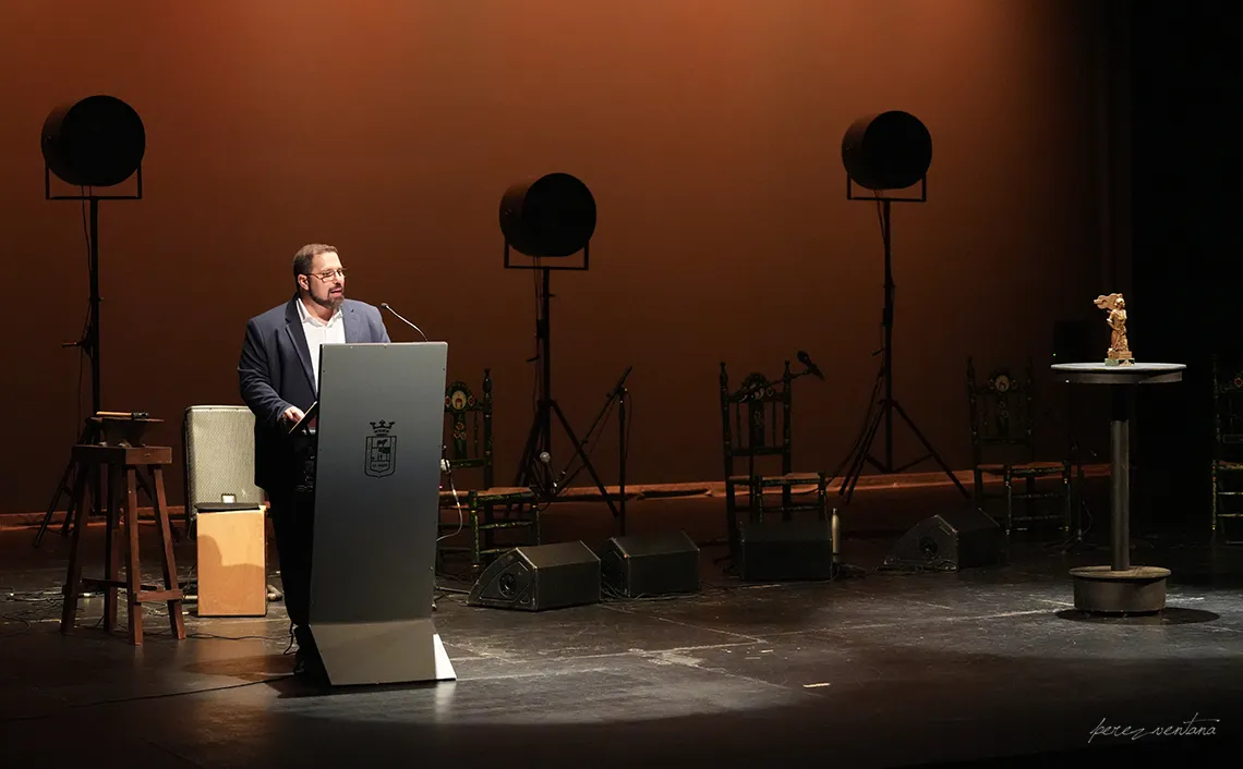 Por todo ello, llamo al escenario con el aplauso de todos ustedes al justo merecedor de La Venencia Flamenca al Cante de 2024, Juan José Amuedo Galán, Juan Juanelo.