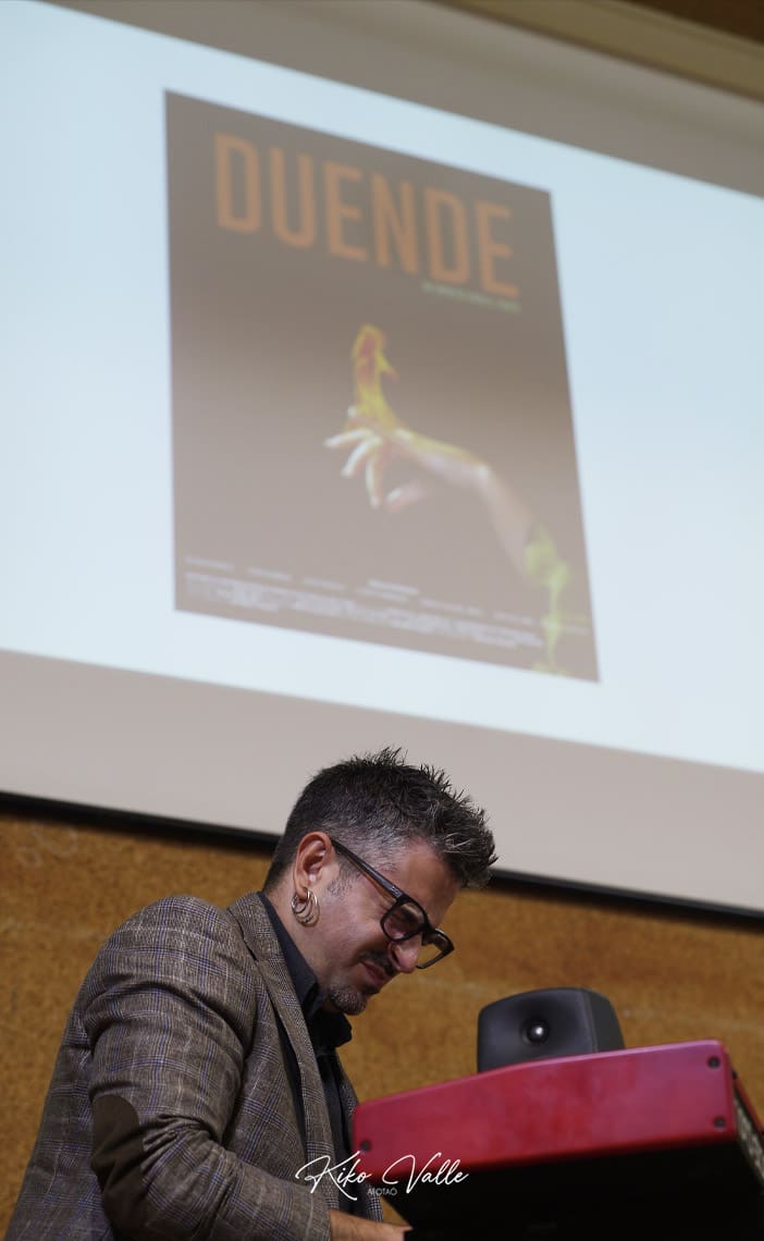 Explicó su propia experiencia con la novela de ficción flamenca La séptima cuerda —pueden ver aquí la presentación que hizo en nuestro espacio cultural de Jerez—y su cortometraje Duende —o aquí cuando lo acompañamos en Dos Hermanas—, que se proyectó a continuación, desgranando las aventuras y desventuras del proceso creativo y de realización además de su repercusión en las aulas como recurso didáctico y de promoción del flamenco y el recorrido que tiene por los festivales de cine donde sigue cosechando premios.