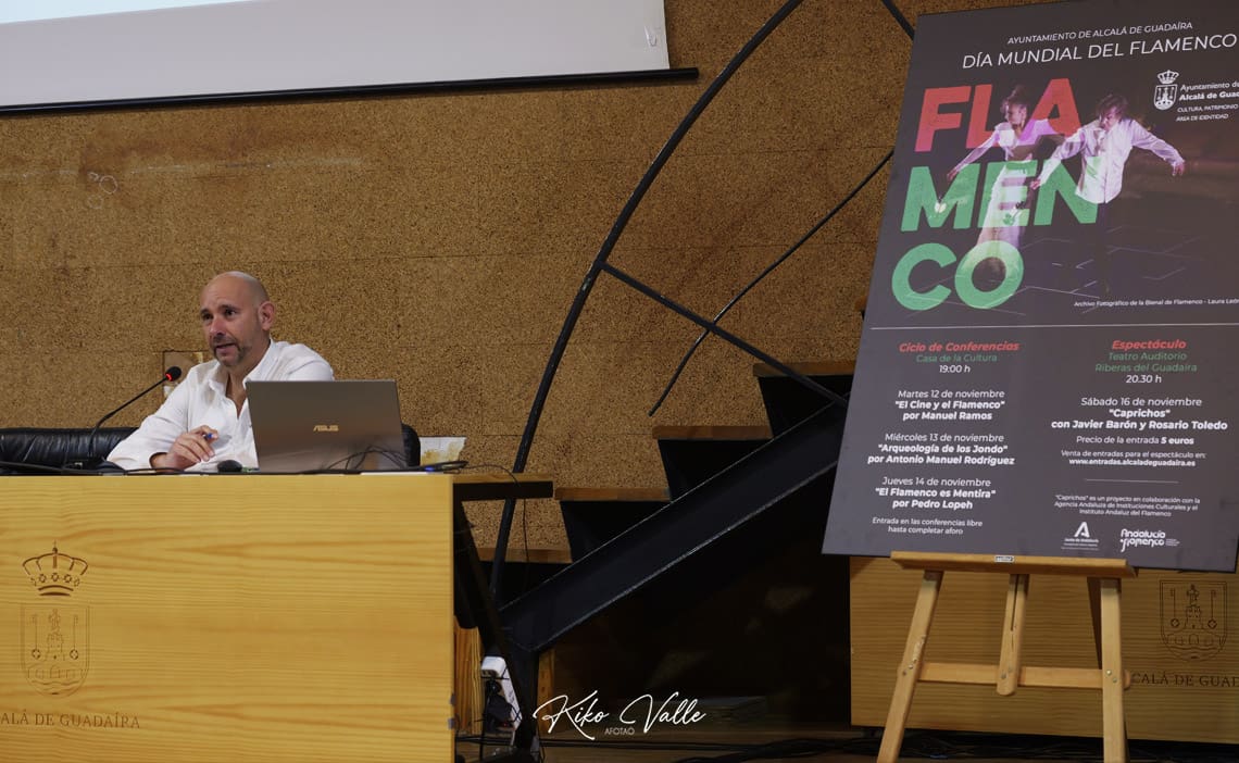 La disertación estuvo amenizada por el piano digital de Jesús Ramos, que interpretó algunas piezas antes y después de la conferencia. Y sirvió de inauguración de un ciclo que el Ayuntamiento de Alcalá de Guadaíra ha organizado para conmemorar el Día Mundial del Flamenco. El miércoles 13 de noviembre es Antonio Manuel Rodríguez quien habla sobre su Arqueología de lo jondo y el jueves 14 Pedro Lopeh trae su ponencia El Flamenco es Mentira. La celebración culmina el sábado 16 de noviembre en el Teatro Auditorio Riberas del Guadaíra con Caprichos, de Javier Barón y Rosario Toledo, un espectáculo de baile que se acaba de estrenar en la pasada Bienal de Flamenco de Sevilla con éxito de crítica y público, cuyas entradas están a la venta aquí al precio simbólico de 5 euros.
