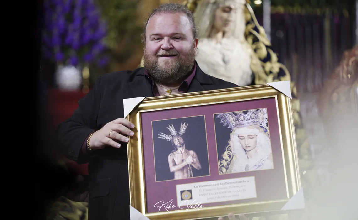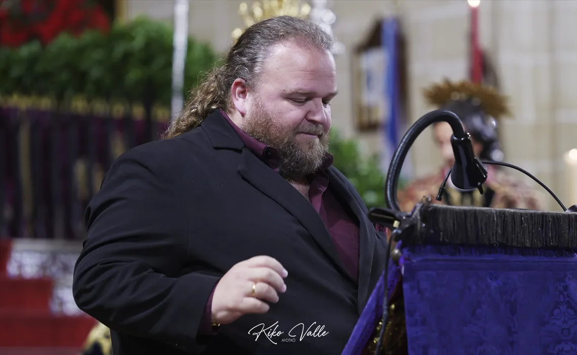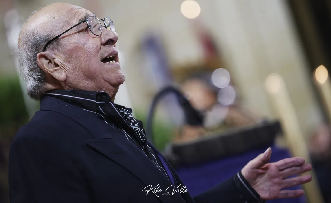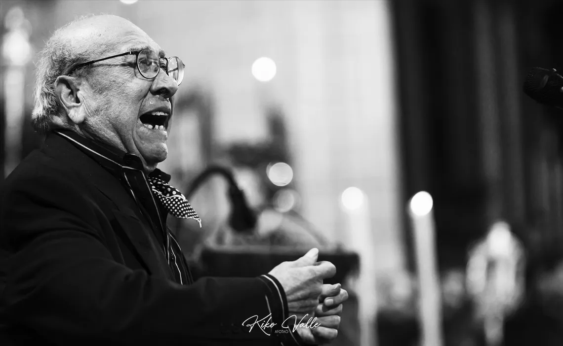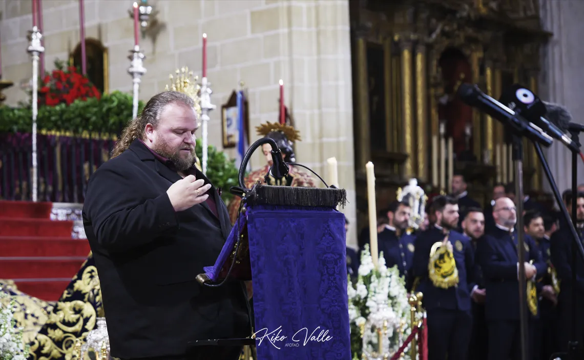 El público abarrotó la iglesia en un lunes. Le hicimos caso a Garrido, que nos invitó a «dejarnos llevar por la magia del que habla con el corazón y no le cabe mentira». Ezequiel declamó emocionado, acordándose de cuando iba de la mano de su padre Alfredo Benítez admirando las cofradías y escuchaba en cualquier esquina las voces de los saeteros cuyos nombres citó en su discurso. Glosó la figura de El Guapo, santiaguero de voz limpia que hacía el silencio alzando su clamor entre el bullicio. Y describió la saeta jerezana como «una flecha, cortita y directa» que aunque se interpreta de diferentes formas –por seguiriya, martinete, carceleras…– se para en Jerez de manera dramática y visceral, especialmente en los gañotes gitanos haciendo de esta bendita tierra «cuna y capital de la saeta flamenca». No se pudo contener y él también la cantó, como hace en la intimidad todos los días de la Semana Santa. Pero su mejor saeta la tiene para su amor, allí presente hipnotizada con la exaltación de Ezequiel.