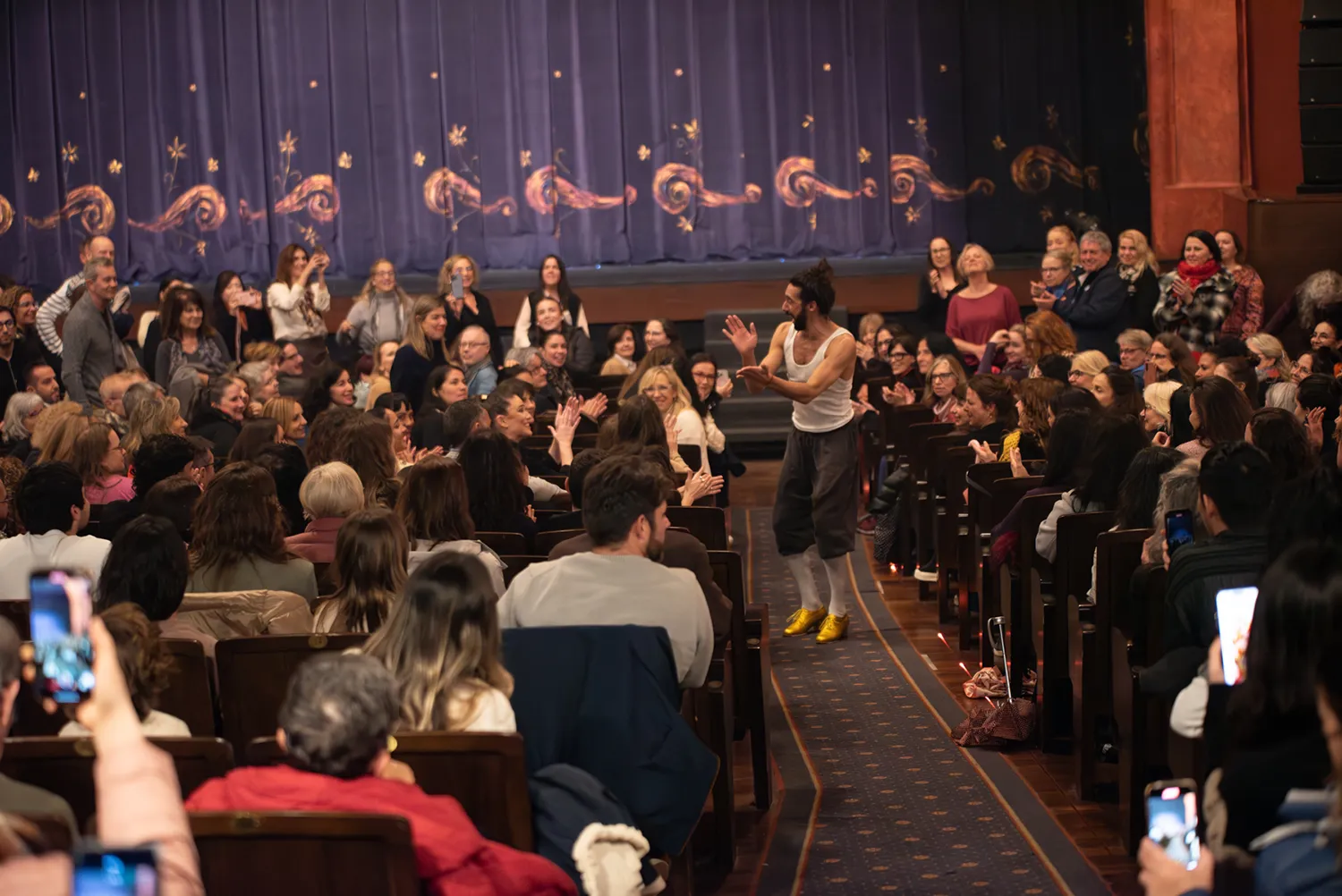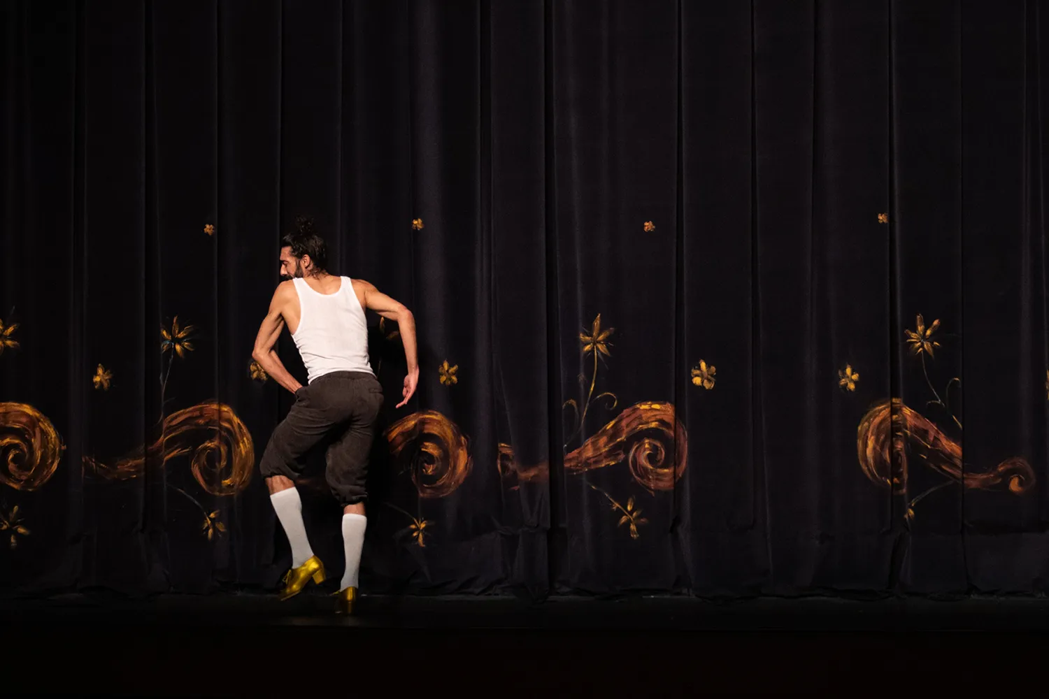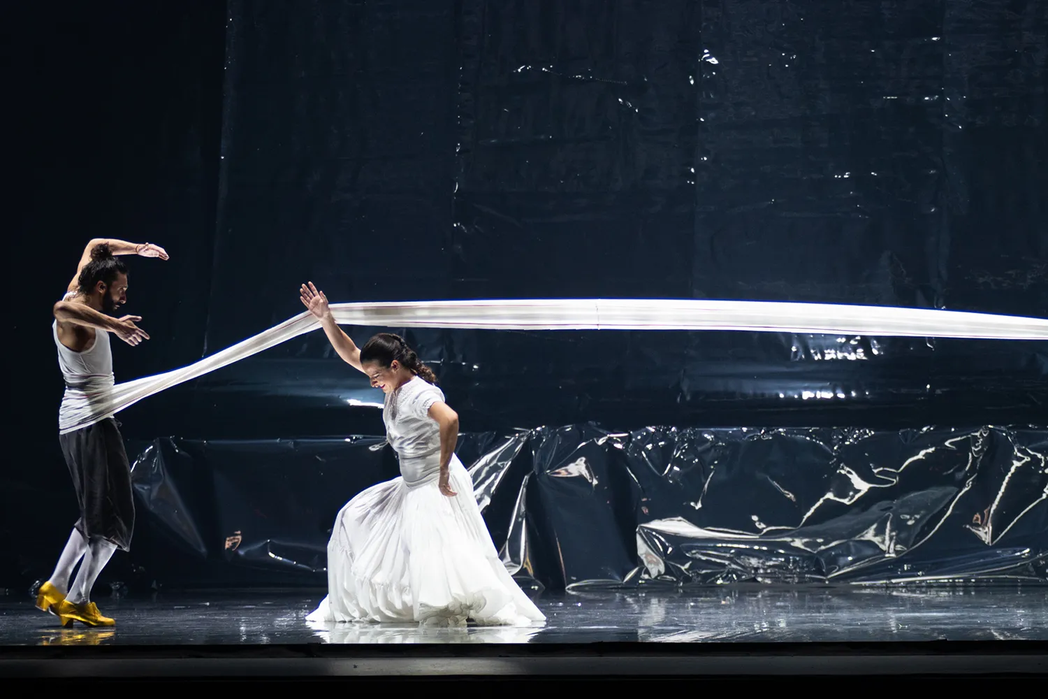Aunque todo viene envuelto en cierto halo de misterio, acaso con una excesiva insistencia en lo poético (¿es María Zambrano a quien citan en algún pasaje?), el humor y el juego están presentes en una propuesta eminentemente visual, pero que va a ir dando cada vez más paso al baile. Los tanguillos con zapatos de colores, e incluso con luces incorporadas, conducen al juego de las sillas, y este a unos tangos donde Guerrero, ya convertido en una cobijá más, luce su baile más poderoso, imbatible en lo físico y arrebatador en lo emocional.