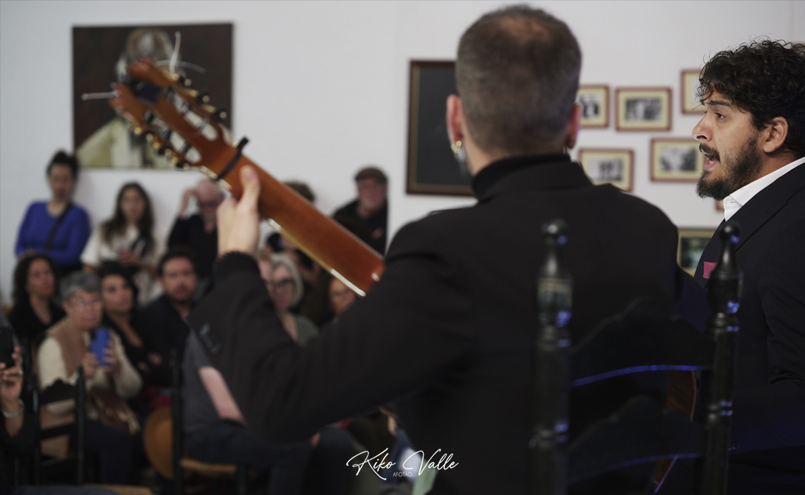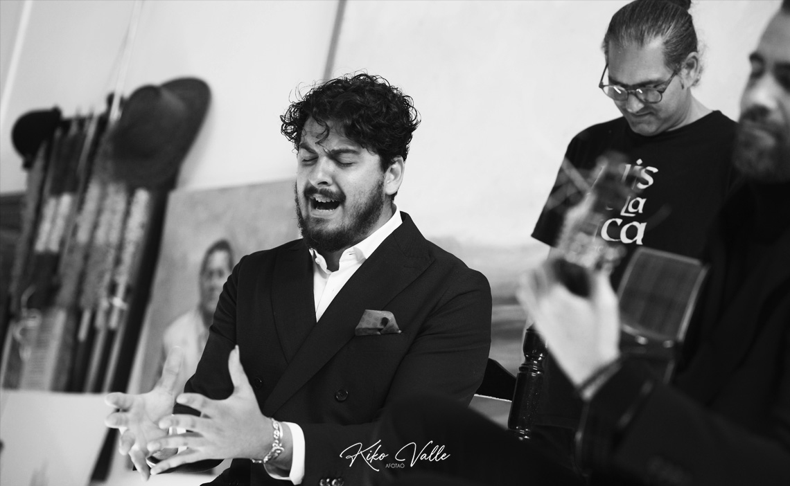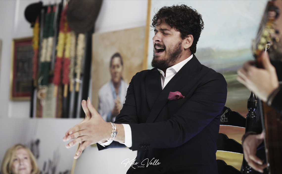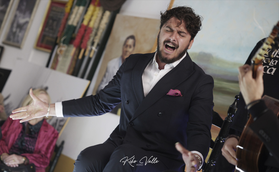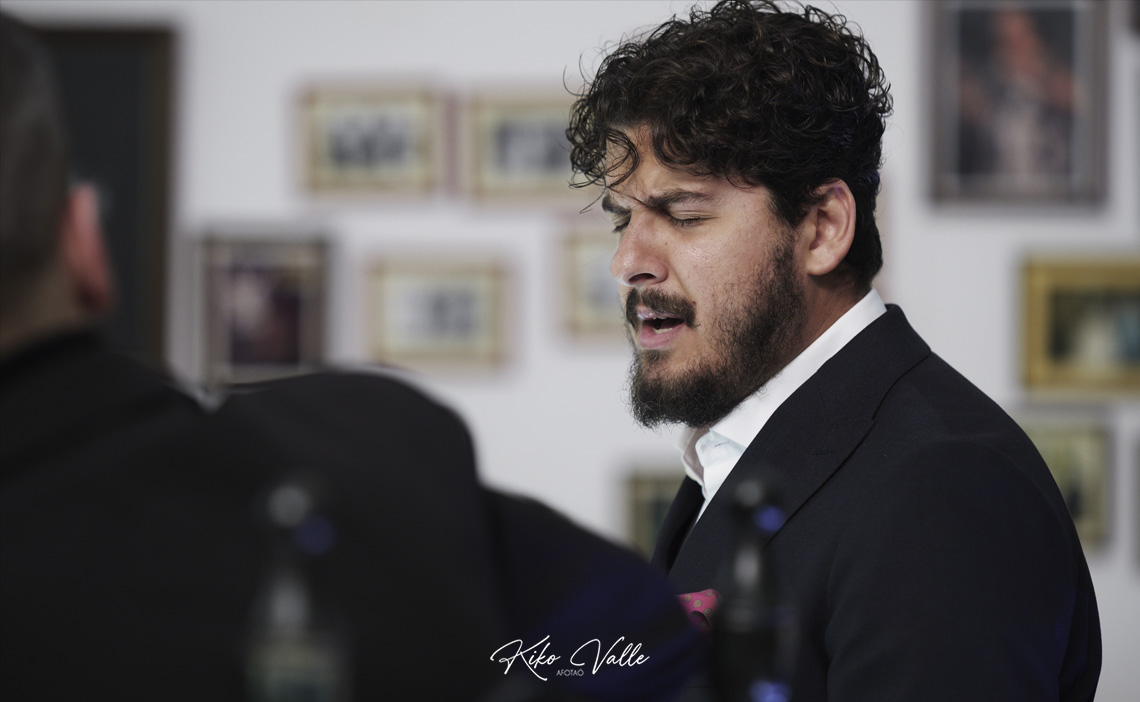 Cantó con la voz recia y gorda, acurrucando en su garganta quintales de jondura y conocimiento. Y a pesar de su insultante juventud se le nota la afición porque toma cositas de aquí y de allá de las figuras de su tierra, como hizo al mirarse en El Torta. Pero sin remedos ni imitaciones. Porque le manga giros a todos y no suena a ninguno. No se pierde en florituras y va al tajo. Su voz es potente y clara. Y sus hechuras cantaoras se jincan en el menos es más. Tiene miga, hay maera.