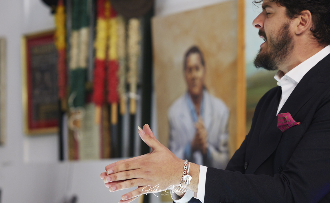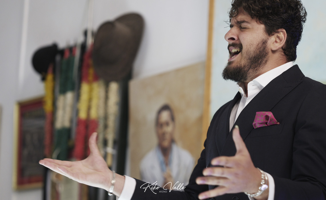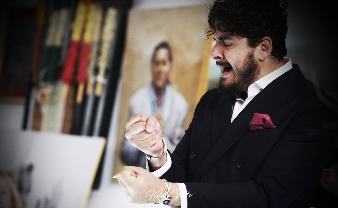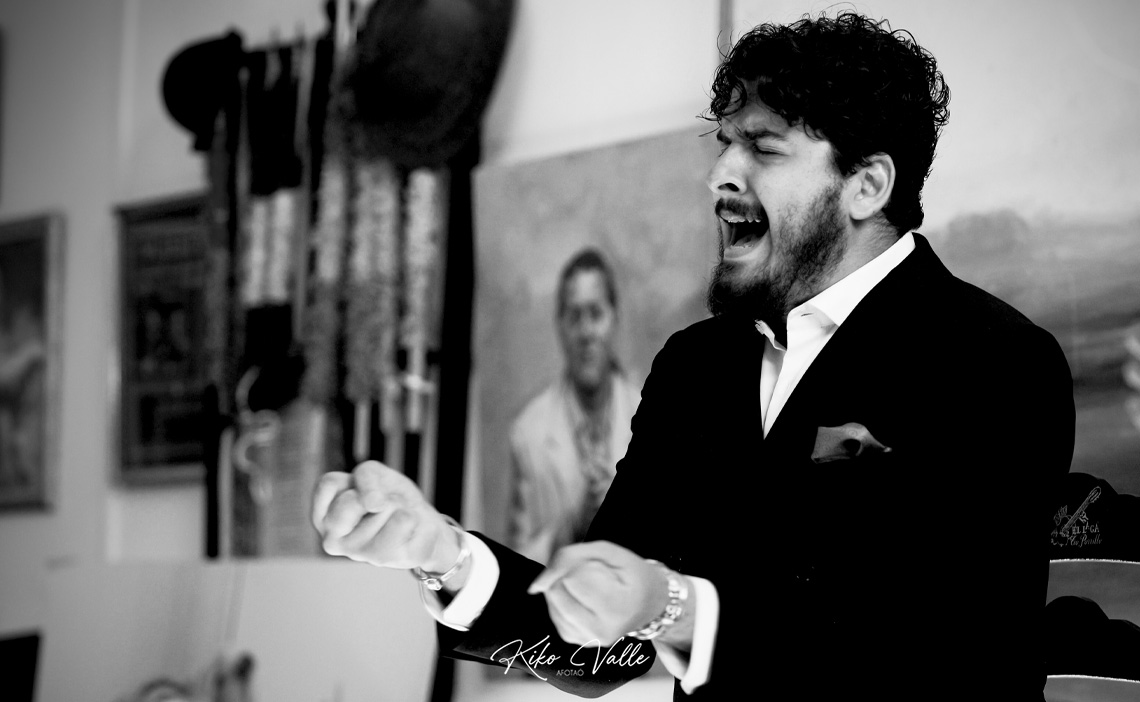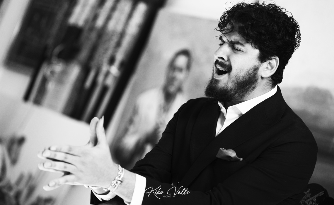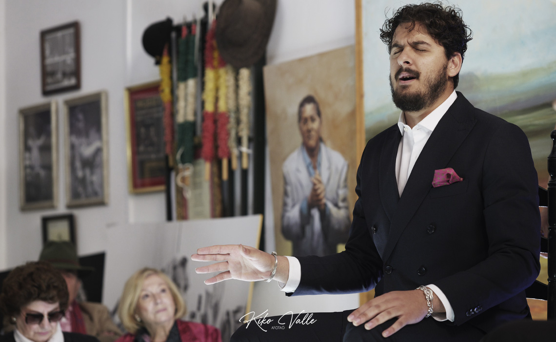 Cantó con la voz recia y gorda, acurrucando en su garganta quintales de jondura y conocimiento. Y a pesar de su insultante juventud se le nota la afición porque toma cositas de aquí y de allá de las figuras de su tierra, como hizo al mirarse en El Torta. Pero sin remedos ni imitaciones. Porque le manga giros a todos y no suena a ninguno. No se pierde en florituras y va al tajo. Su voz es potente y clara. Y sus hechuras cantaoras se jincan en el menos es más. Tiene miga, hay maera.