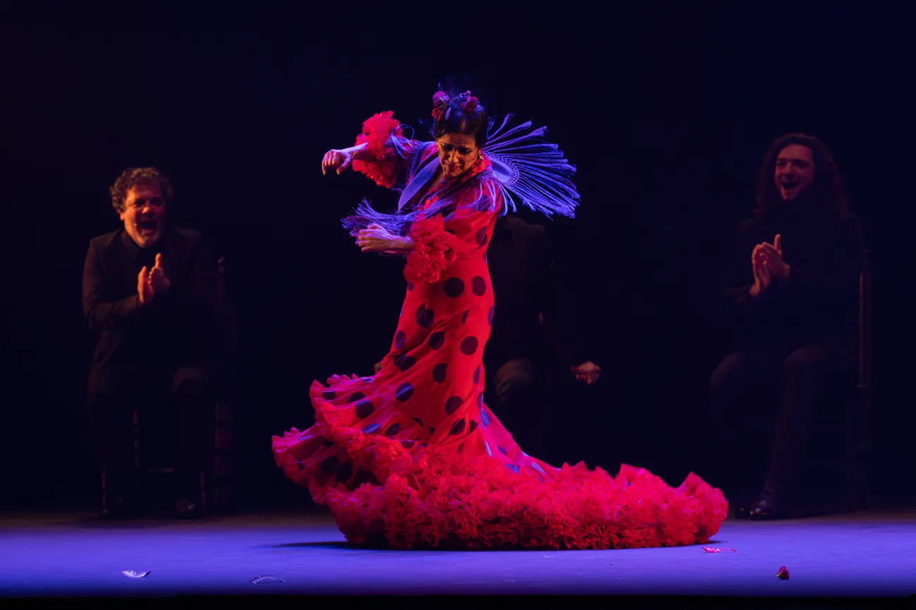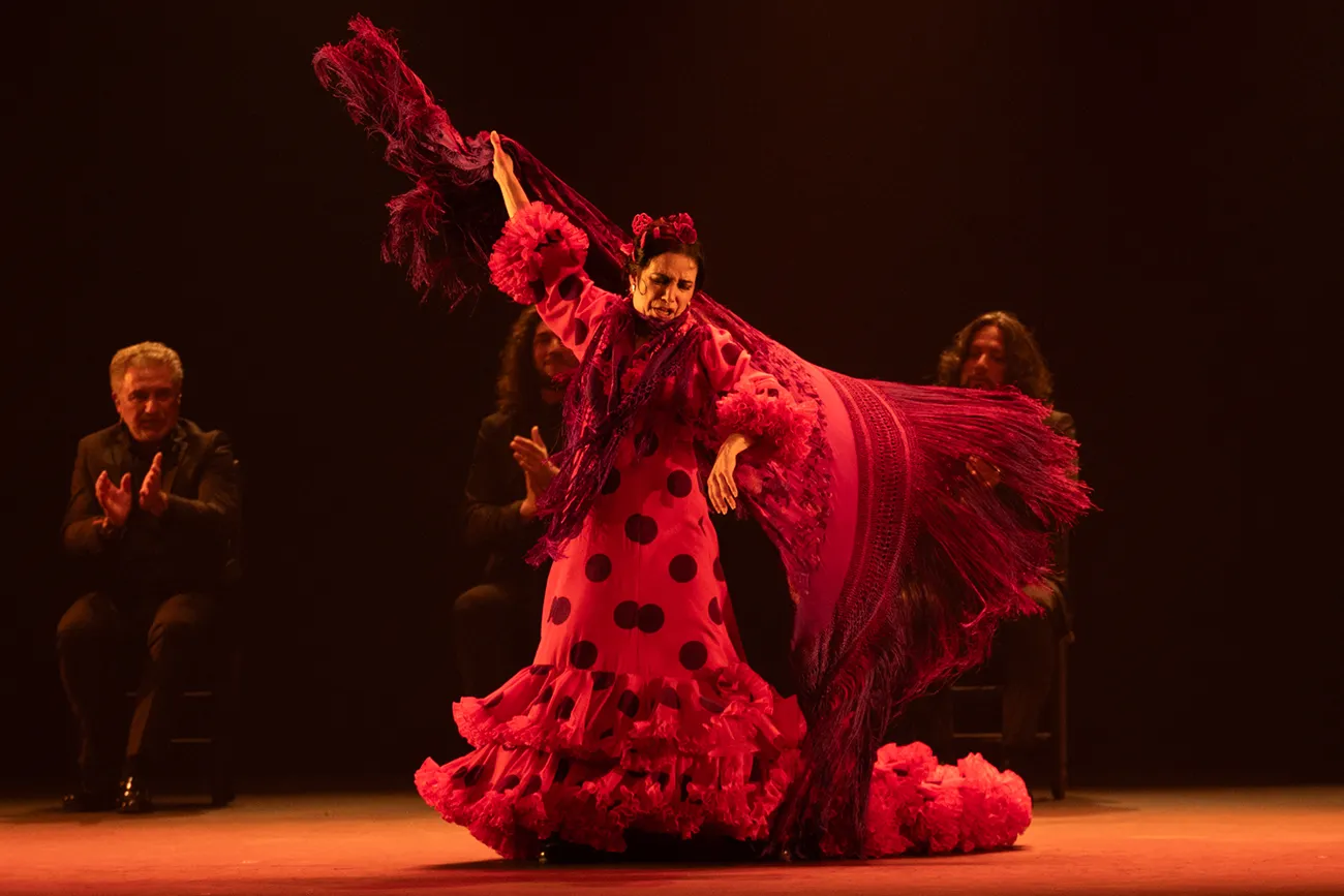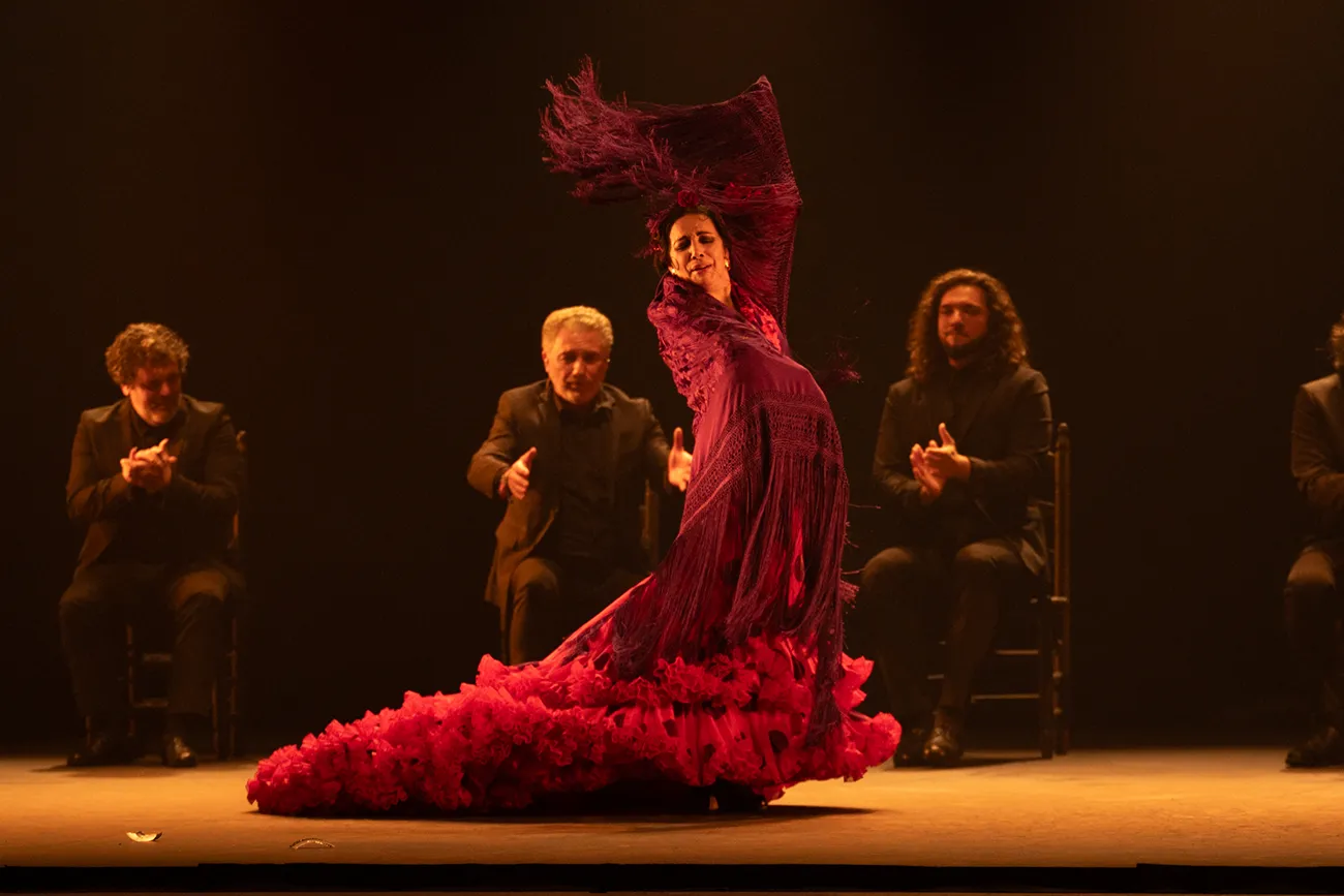 Como fuere, se trataba de volver a ver a esa maestra indiscutible desplegando sus cualidades sobre las tablas, y no tardamos en hacerlo. Menuda manera de empezar, yendo a por todas, con su figura menuda como escapada de un cartel modernista o de un lienzo de Romero de Torres, atacando la bulería por soleá con una fuerza que hace olvidar, al menos por un momento, sus 54 años y los 19 espectáculos que lleva a sus espaldas con su compañía.