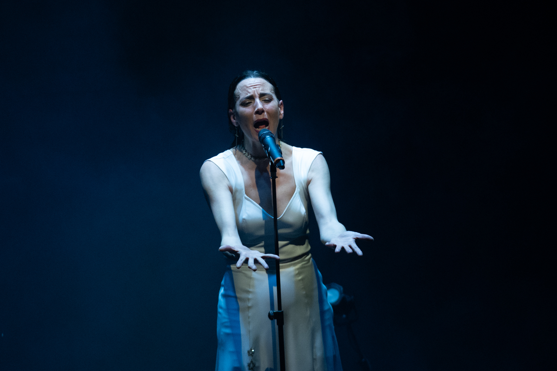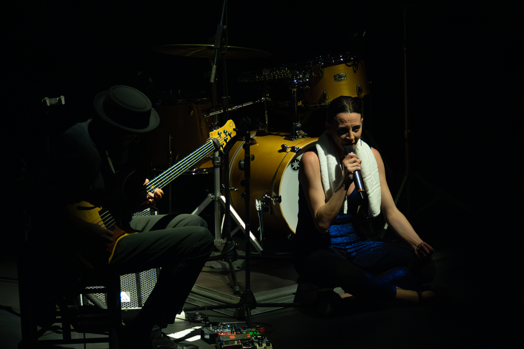 Es una fantasía recurrente entre los flamencos: recordemos, por ejemplo, al Morente al que apodaban –unos cariñosa y otros peyorativamente– el cantante, y que desde luego logró sentirse como tal en su síntesis de arte jondo y punk. O el Paco de Lucía que inventó su sexteto para poder equipararse en potencia sonora y visual con las bandas rockeras ante grandes auditorios. Piñona sigue en cierto modo esa senda, rodeándose de una banda muy enérgica, especialmente en el tándem bajo-batería de Juanfe Pérez y Javier Rabadán, pero también en el cante vehemente de Manuel Pajares. Las luces crudas, el escenario sombrío y la máquina de humo, así como un vestuario que incluía unas llamativas rodilleras, hacen el resto.