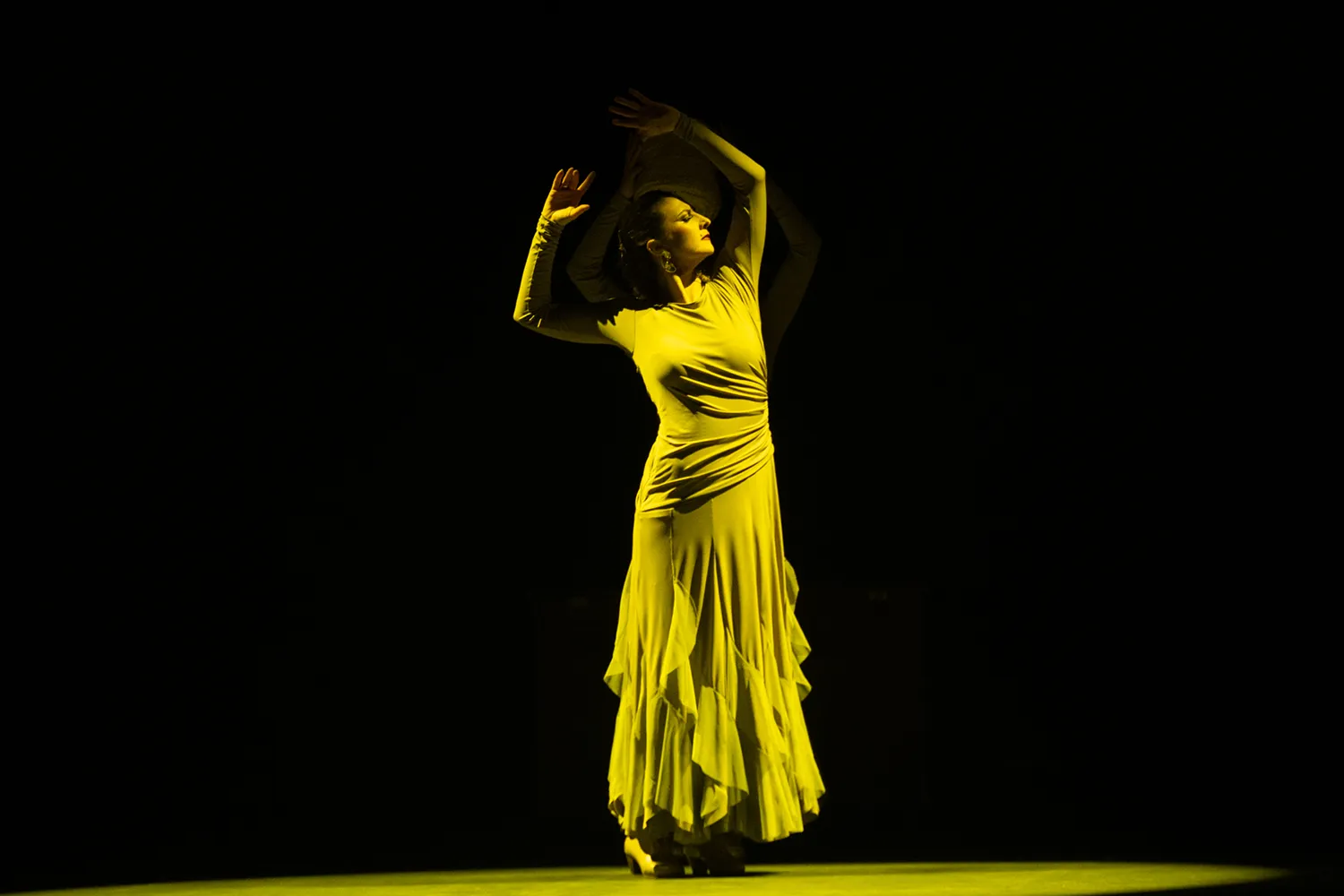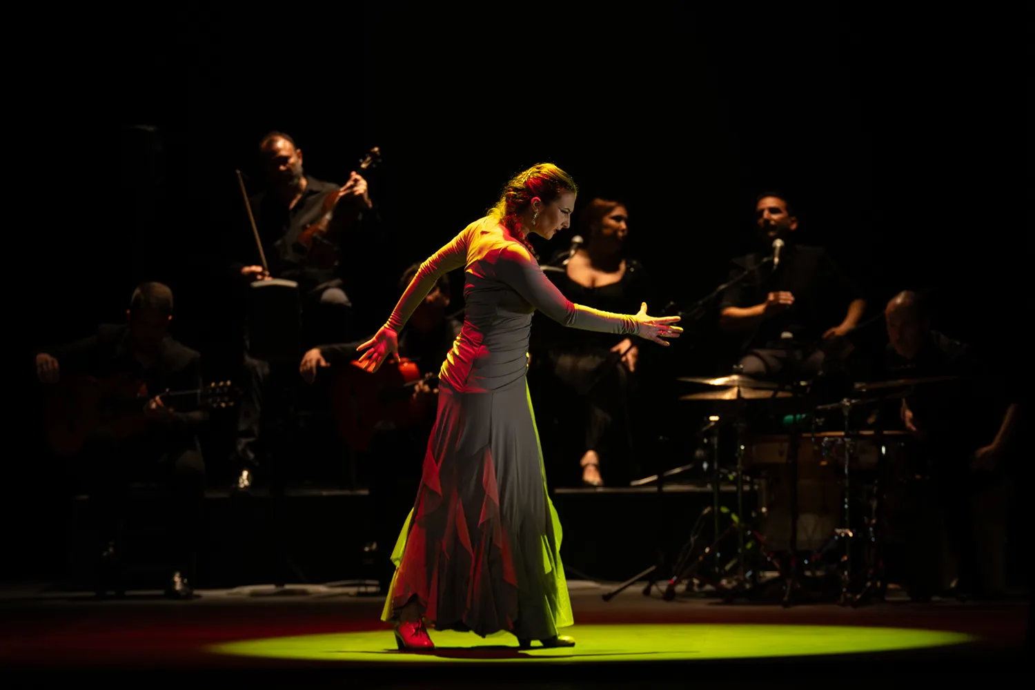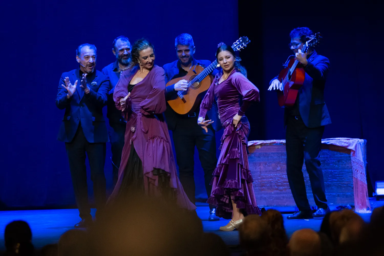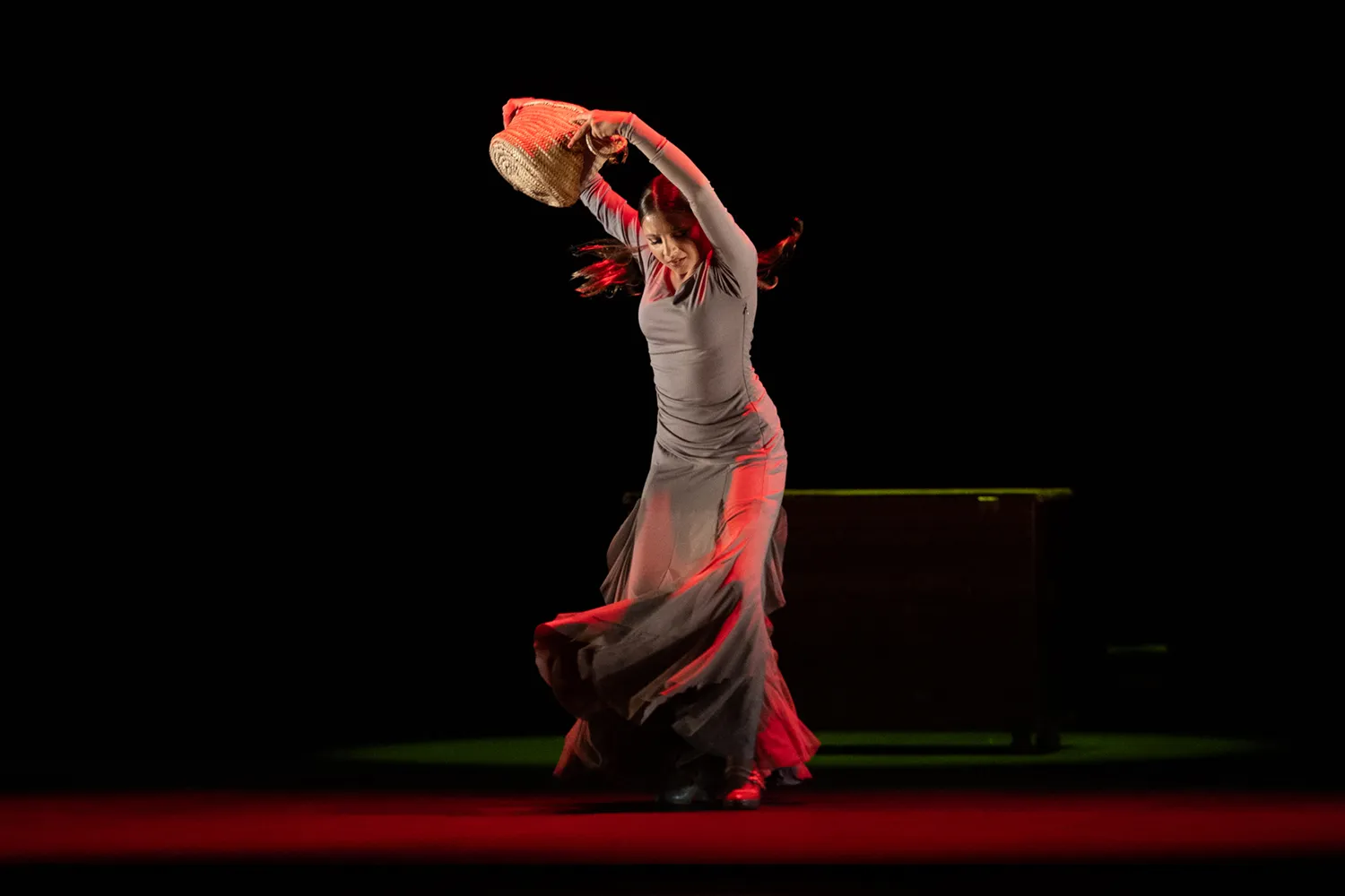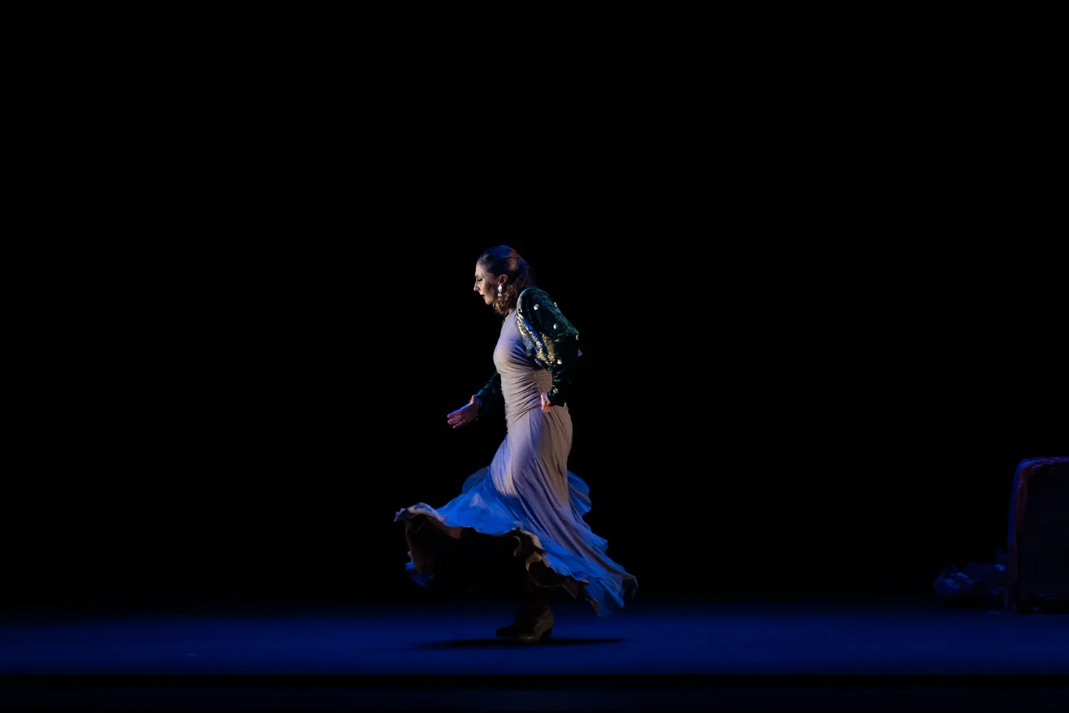 Una lenta versión de La Tarara rompe el silencio en el escenario. La música proviene de una pequeña orquesta apostada a la derecha del proscenio, como no queriendo molestar ni robarle espacio a la coreografía. Un violín lleva la nota cantante, seguido por dos guitarras, una cantaora, un cantaor, palmas y percusión. Se ha instalado en el Flamenco una puesta en escena basada en luz macilenta sobre negro, lo que puede darle mucho ambiente, pero también persiste una escasa posibilidad de ver con claridad lo que acontece, y Tararamía se va a desenvolver con la misma escasa luz. Quizás el mensaje flamenco se encuentre escondido en la oscuridad, o al menos eso nos pretenden hacer creer.
