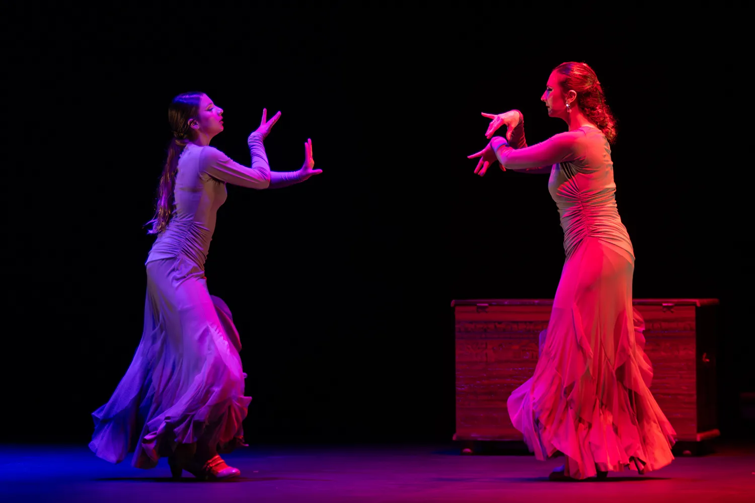 Poco a poco, la música de la tarara, que empezó con especial lentitud, como el tiempo parece no correr en la percepción de las jóvenes, deja paso al resto de cantes que se van sucediendo casi sin tiempo entre uno y otro, como la vida misma que tampoco da tregua. Suenan los abandolaos, y la caña, las alegrías, los tangos de Graná, la malagueña, el cante por soleá, el taranto, la seguiriya, y de nuevo la tarara.