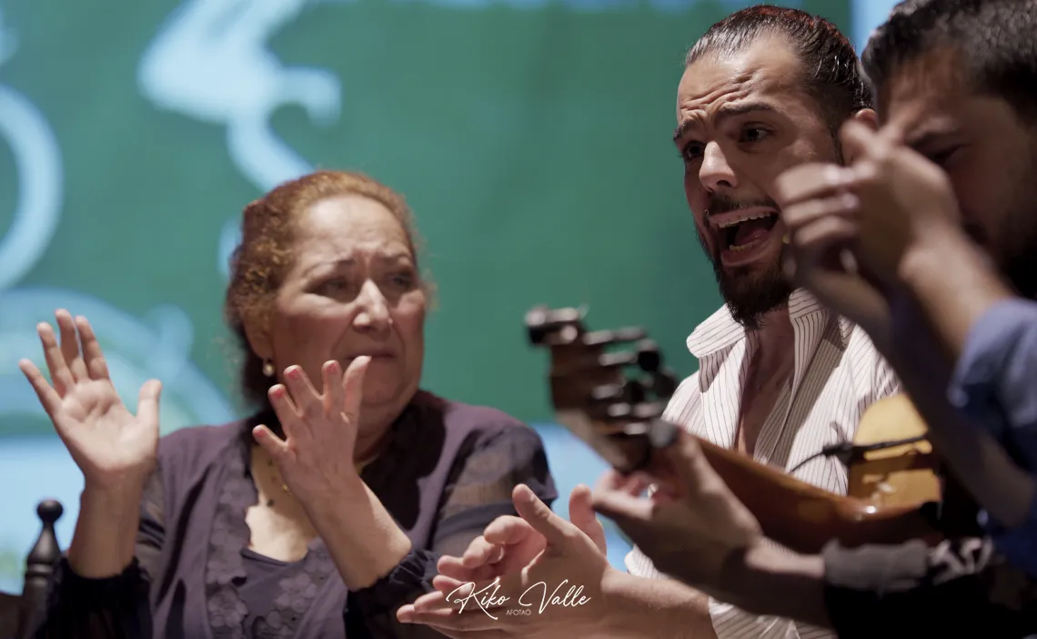 De Utrera pisaron las tablas al cante Jesús de la Frasquita –almibarado y flamenco–, Joselito Chico –rancio y con arañones– y José de la Buena –jondo y añejo–, con la guitarra de Pitín hijo y las palmas y vueltecitas de Rocío Peña, Mariola Peña, Esperanza Peña, Sole Jiménez, Manuela Moya y Meme de Pelusa.