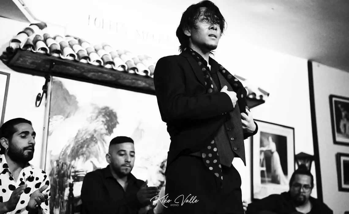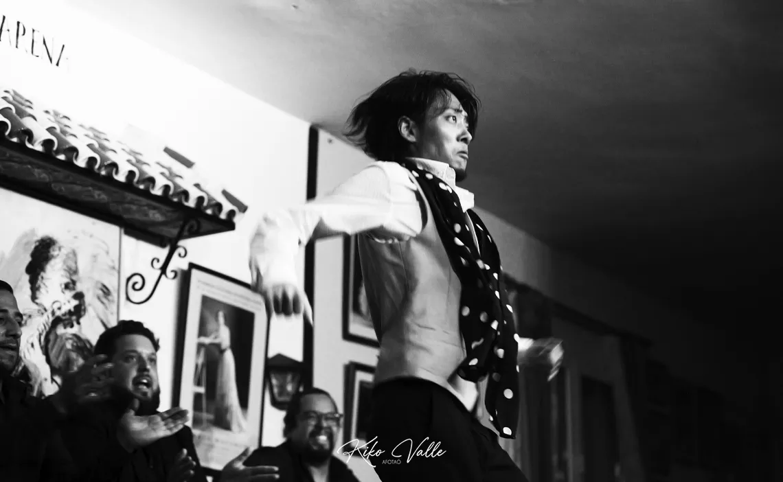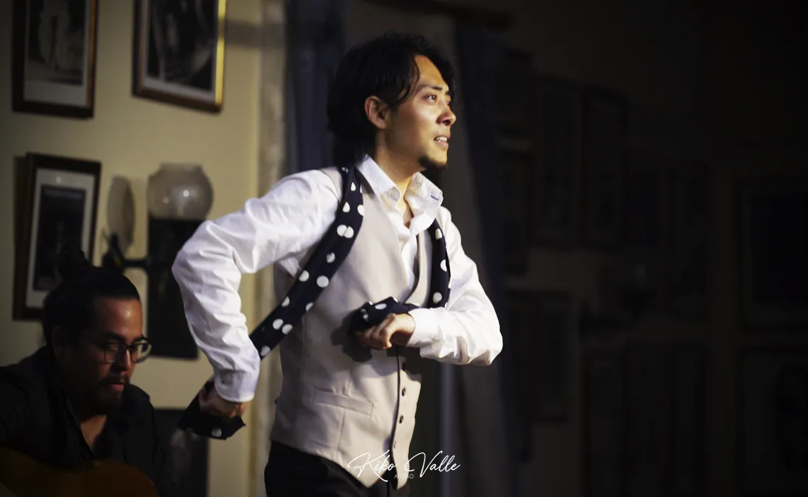 Ahora que nadie escucha… ¿Puede decir un crítico rancio en voz alta sin que se enfaden mis primos que un japonés baila gitano? Quizás me he pasao. Pero es lo que me viene al pensamiento después de lo de anoche. Salvando las distancias, por supuesto. Cogido con pinzas. Como quieran decirlo. Pero este niño lo tiene. Y permitidme lo de niño, porque solo calza 24 años y una humildad tremenda. Los flamencos nacen donde pueden. O donde quieren. Undevé los cría y ellos se juntan. Y la Peña Flamenca Torres Macarena de Sevilla los trae más en cuando que de vez apostando por lo tostaíto de la olla. En esta ocasión, lo pegaíto del wok. Fue una de esas sorpresas que te dibujan la sonrisa en la cara con la satisfacción de decir «yo estuve allí».