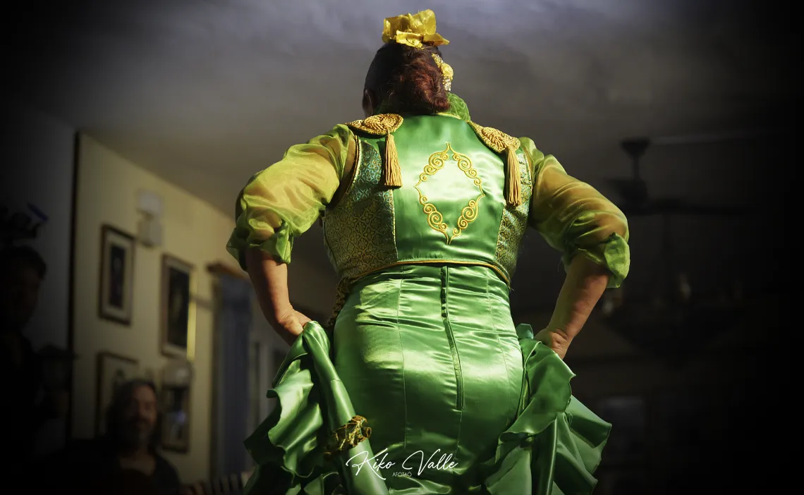 Manuela supo pararse en los maderos con la suntuosidad solearera, paseando con gallardía y el rostro compungío. Se aferró al clasicismo moreno y no titubeó con experimentos modernos. Bailó como está escrito, pegaíta a los cánones tradicionales, flamenca y gitana. Nada más. Después hizo lo propio por bulerías, con los contoneos gustosos, el taconeo que se requiere y el braceo de siempre. Los marcajes y replantes contundentes, las figuras que se esperan, los movimientos del vestío que seducen… fueron los ingredientes del majao esencial que le dan el sabor a su baile. Es lo que, dentro de la aparente sencillez, provocó junto a las palmas, jaleos y el arrullo ardiente del cuadro que la acompañaba, que su paso por los maderos de la peña se convirtiera en la fiesta infinita.