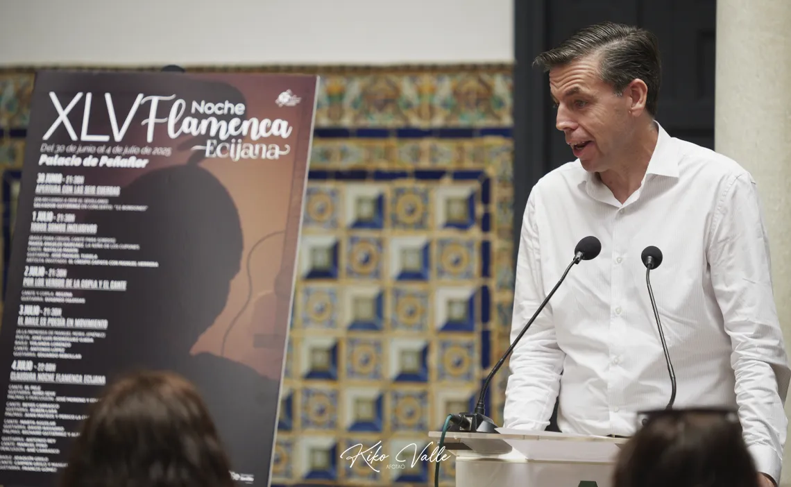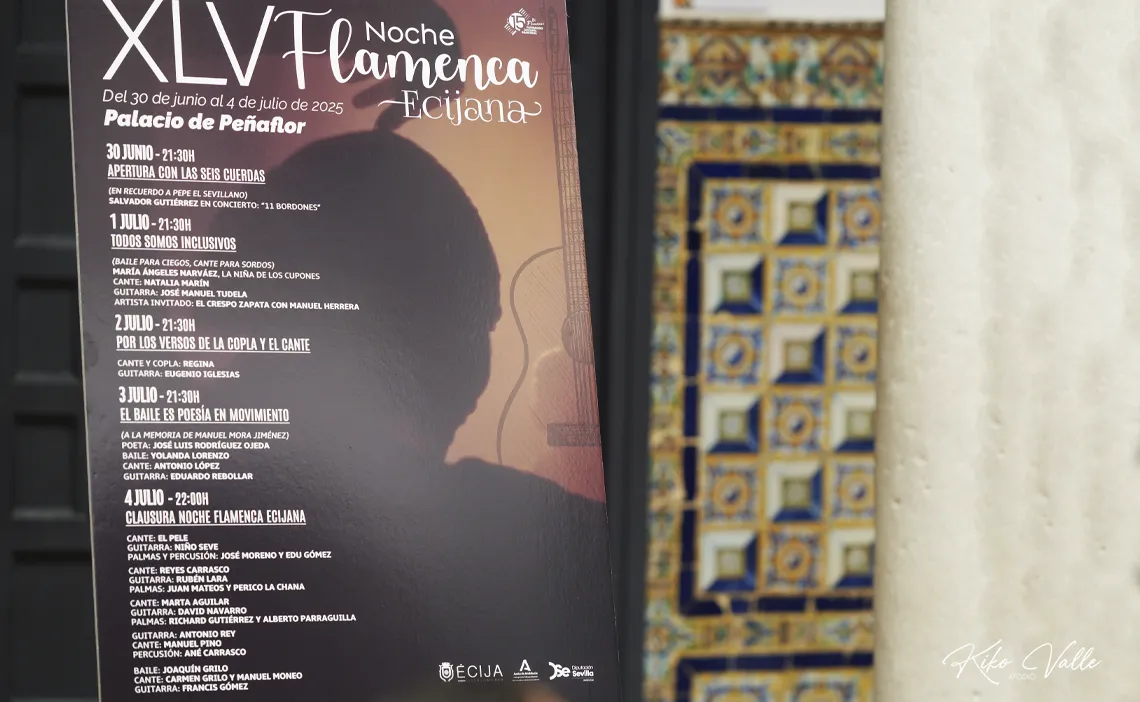 Écija celebrará el próximo mes de julio la cuadragésimo quinta edición de la Noche Flamenca Ecijana, un encuentro que se desarrollará a lo largo de cinco días y que incluye en su programación distintas actividades. El miércoles 18 de junio se ha presentado el cartel en la sede del Instituto Andaluz del Flamenco, entidad dependiente de la Consejería de Cultura y Deporte (Junta de Andalucía), en un acto que ha contado con la participación de su director Cristóbal Ortega. Este año el festival se desarrolla desde el lunes 30 de junio al viernes 4 de julio, a partir de las 21:30 horas, excepto el día de la clausura que comienza a las 22:00 horas. Además, todo lo recaudado en la última jornada se destina a la Asociación de Esclerosis Múltiple de Écija.