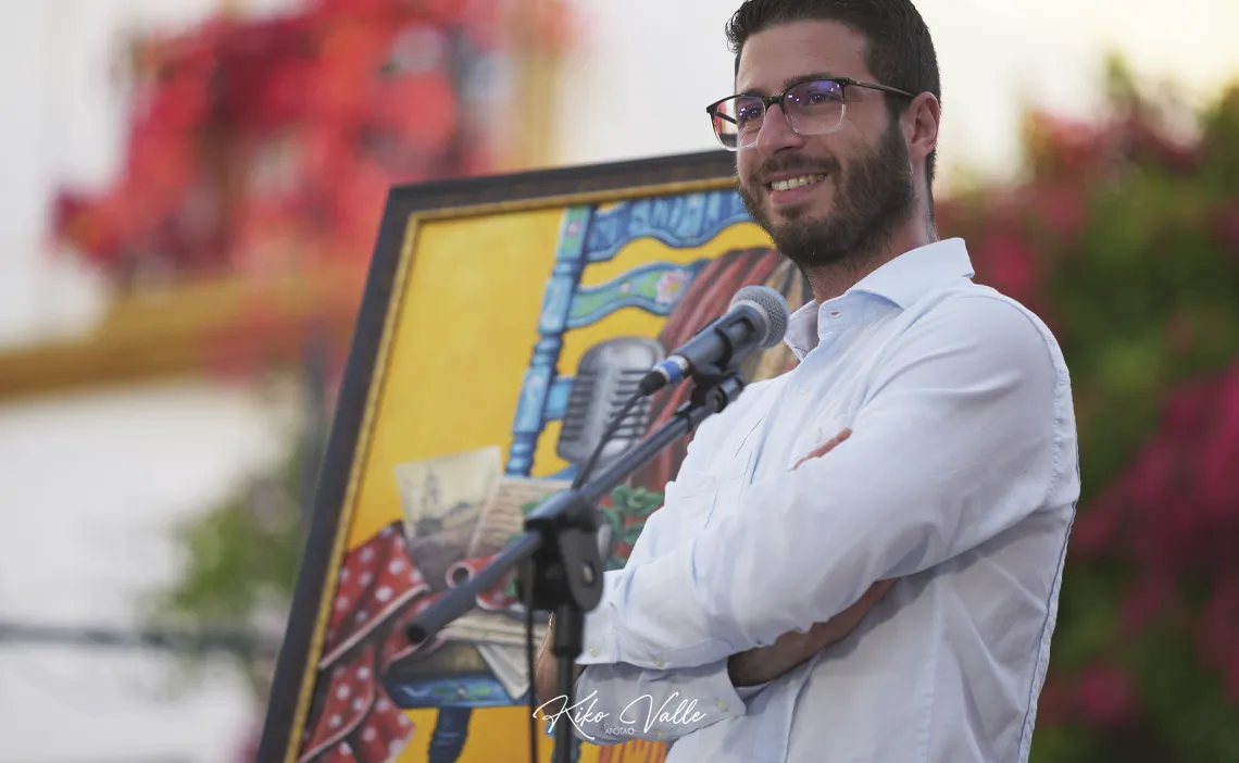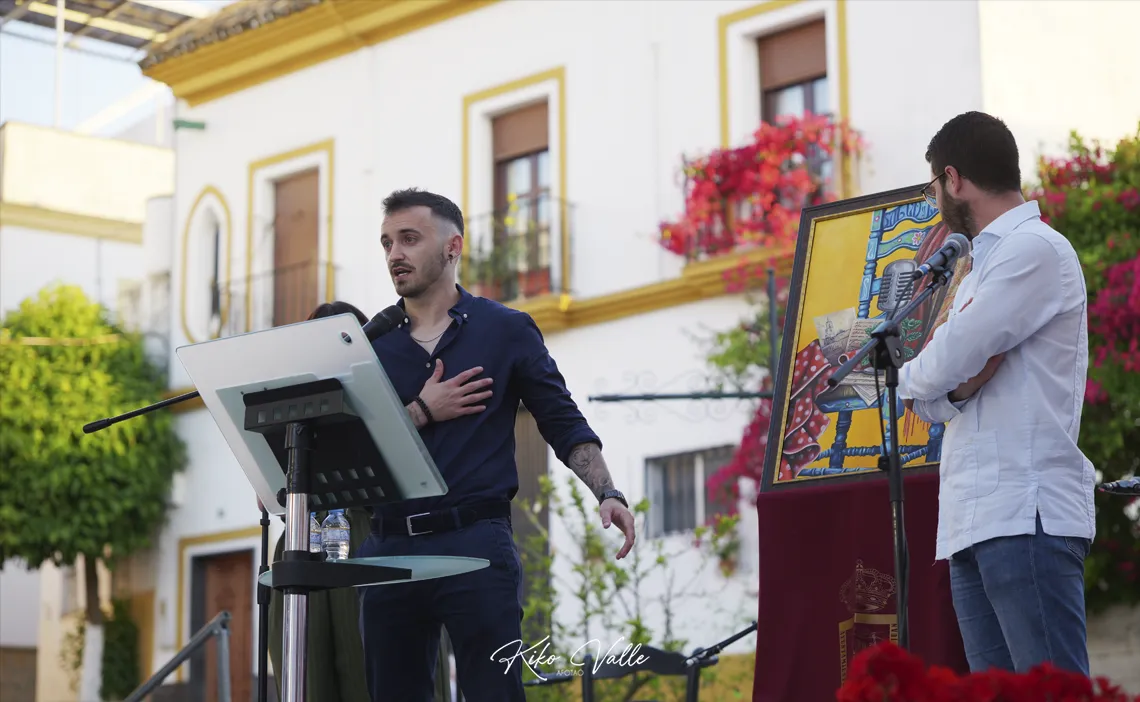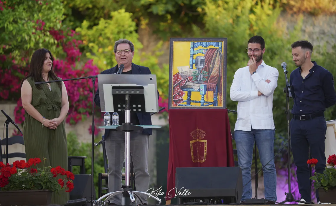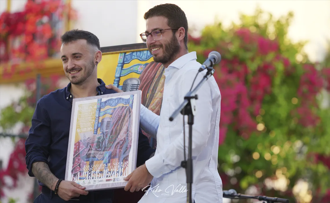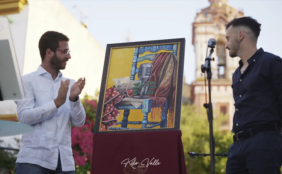 El cartel, obra del joven artista local Manuel Ignacio Cordones Tercero, simboliza el legado de Miguel Acal en el mundo del flamenco, combinando innovación y tradición. Cordones, reconocido por su creatividad en pintura y diseño de tatuajes, ha captado la esencia del homenajeado, reflejando su compromiso con este arte universal. “Para mí es una experiencia única y todo un reto personal y profesional. He querido rendir homenaje a Miguel en multitud de detalles de la obra. Para ello he investigado sobre su figura y legado con personas que lo conocieron bien”, señalaba el artista, cuya obra fue acogida por una gran ovación por parte de los centenares de asistentes.