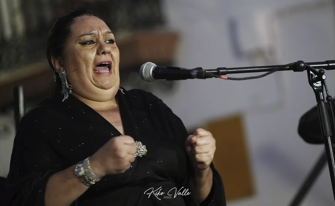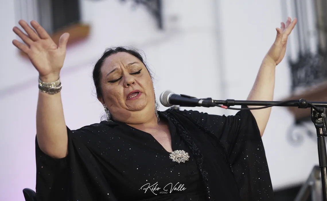 La presentación culminó sellada con el cante de la utrerana Mari Peña, acompañada a la guitarra por su marido Antonio Moya y a las palmas por Antonio Carrasco y José Carrasco. A pesar de estar con faringitis y medicada para poder subirse a las tablas, ni lo mencionó. Pasó fatiguitas dobles para enjaretar los romances, pero se creció en el resto de palos, bordando los tientos tangos con sus particulares mecidas, haciendo filigranas en las cantiñas de Pinini, cantadas como hay que cantarlas, flirteando con los tiempos, cadencias y silencios a compás, arremangándose en la soleá valiente y rancia que se usa en Utrera por los que saben para coronar la noche por bulerías, acordándose de Fernanda y Bernarda, Gaspar o El Turronero, entre otros muchos, derrochando pellizquitos de gitanería al arrope de una guitarra sabi y jonda que la llevó en volandas durante el recital al calor de las palmas lebrijanas.